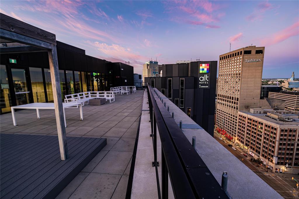 Discover stunning views at this 2 BR condo located in the Glasshouse Skylofts in Downtown Winnipeg! This corner unit features floor-to-ceiling windows, flooded with sunshine throughout, offer an incredible city view as well as one of the best layouts in the building! Spacious and open kitchen/living area featuring exposed ducts and concrete ceilings, stainless steel appliances, high-gloss cabinets, and durable laminate flooring. The walk-through bathroom, adorned with beautiful and luxurious tiled shower walls, is conveniently accessible from both the master bedroom and the living area. Both bedrooms are generously sized, each with ample closet space and dark laminate flooring. Step out onto the south facing expansive balcony, perfect for grilling and soaking in the fantastic views of downtown Winnipeg. The building is packed with amenities, including a theater, fitness center, fully equipped party room with a wet bar, pool table & roof top sanctuary w/panoramic views. Add'l features: unit comes with covered parking, storage locker and is pet friendly! Downtown living at its finest!!