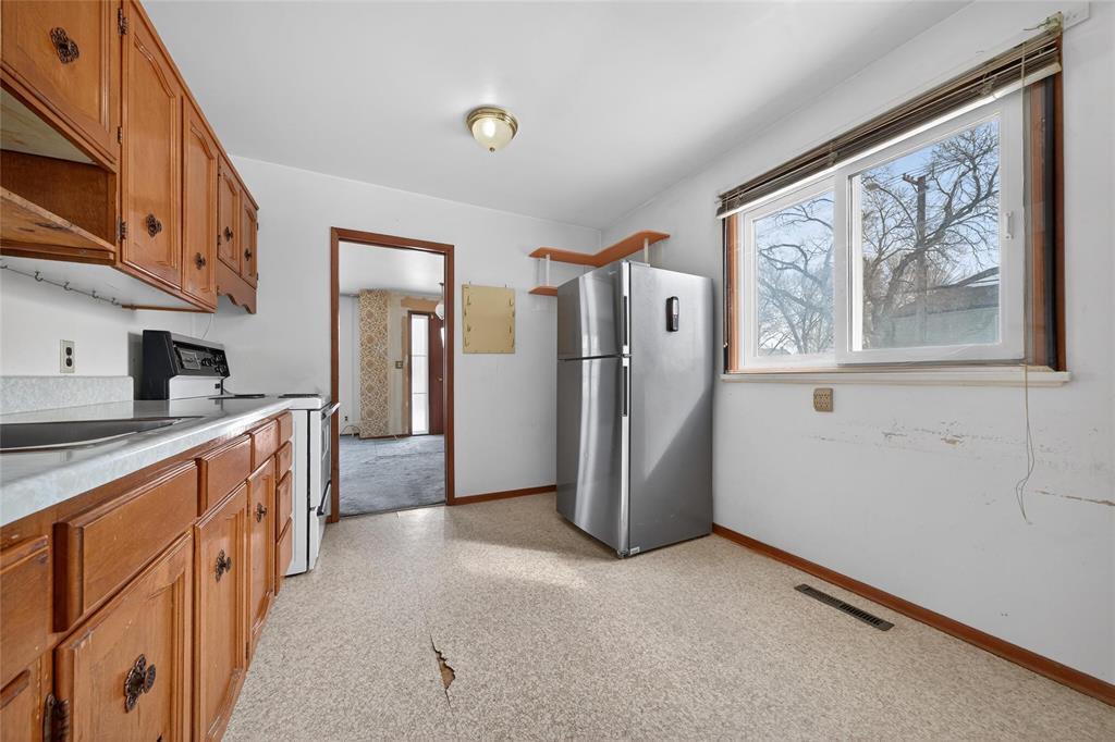 Showings starts Tuesday, March 24th. Offers reviewed Tuesday, March 31st at 1pm. Opportunity Knocks! This 900+ sqft 1972 bungalow offers a functional layout with a spacious front living and dining area filled with natural light, along with a nice-sized kitchen. The home features two bedrooms, a 3-piece bathroom, and an unfinished basement that offers oom for storage, workspace, or rec room development. Home requires renovations, cosmetic updates, and TLC. This is a great opportunity to add value to this home. Situated just east of McPhillips Avenue, this home is situated on a corner lot with back lane access, yard space, and room for parking. Located in an established neighbourhood close to schools, transit, and everyday amenities. Long-time ownership. Home and appliances sold in as-is condition. Buyers to do their own due diligence. No PDS available.