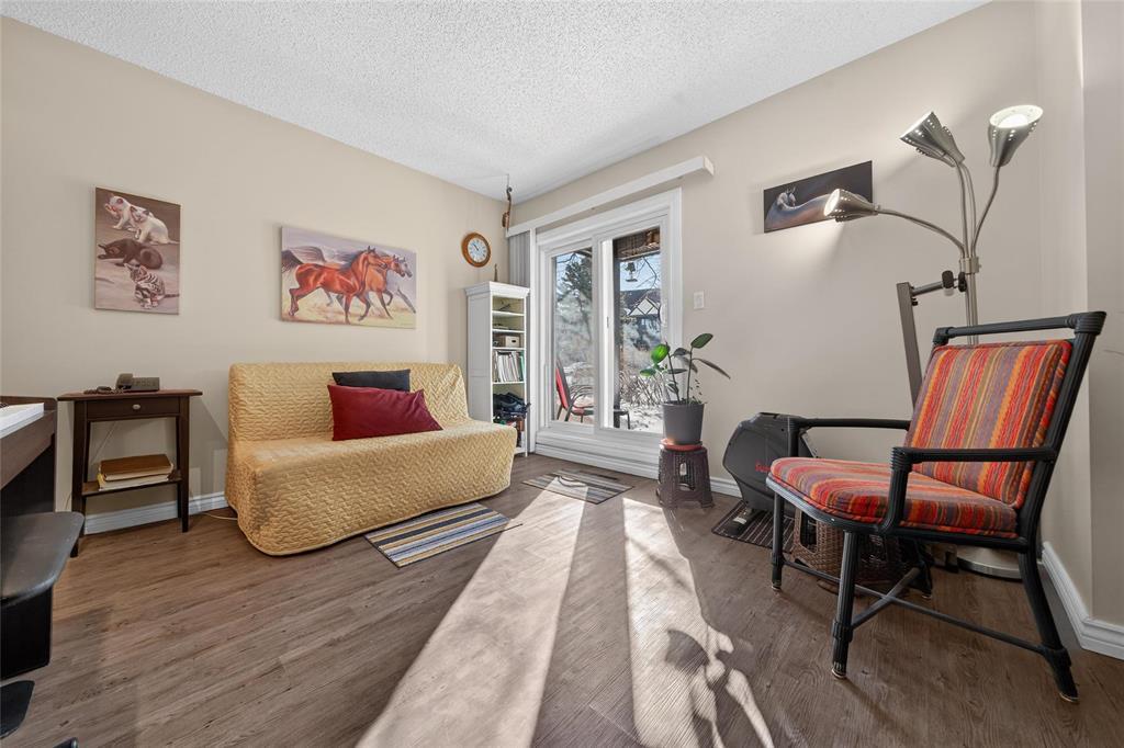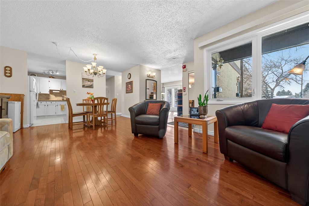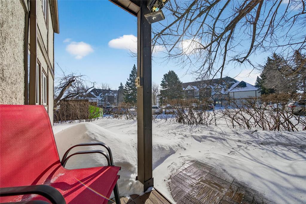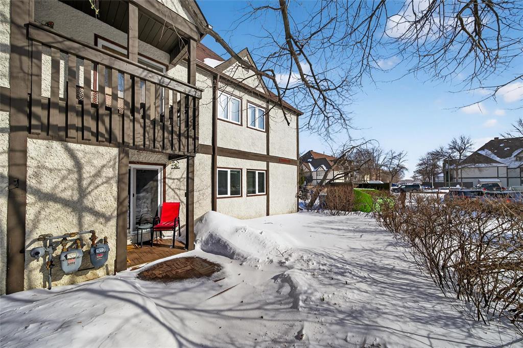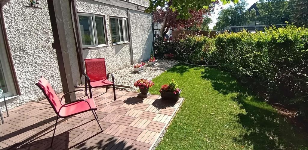 Welcome to Tuxedo Village! This totally updated, spacious, & pet friendly ground-floor condo offers 2 bedrooms plus a den, & 2 full bathrooms in a highly desirable location. The open-concept living & dining area features maple hardwood flooring & an ornamental fireplace, creating a warm & inviting atmosphere. The large kitchen is beautifully updated w/quartz countertops, refaced white cabinetry, stone backsplash, island, & an impressive pantry. The bright & versatile den is perfect for a home office or potential third bedroom. The spacious primary bedroom includes a fully updated ensuite w/walk-in shower & a generous closet. A 4-piece main bathroom, in-suite laundry, vinyl plank flooring, & abundant storage add to the functionality, along w/ a 4x6 heated furnace/storage room w/exterior access. South-facing patio doors off the den lead to a private patio w/composite deck, yard space & includes 2 outdoor parking stalls. Residents enjoy access to an outdoor pool, garden boxes, and beautifully maintained green space w/mature trees. Located just minutes from Assiniboine Park, & shopping, this move-in-ready home truly offers easy living in an exceptional community.