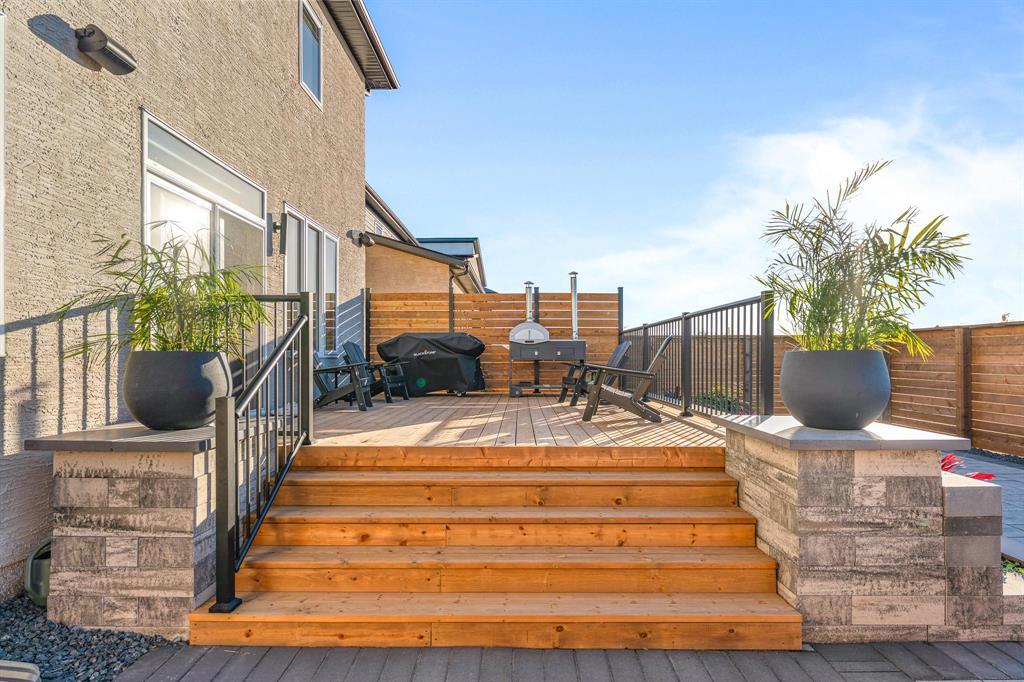 SS Mon Oct 6. Offers as received. This stunning A&S-built custom home offers 2,173SF with 5 bedrooms and 4 bathrooms, designed with high-end finishes and thoughtful detail throughout. From the fully bricked driveway and double garage to the landscaped, fenced yard with a deck, outdoor fireplace, and patio stones, every detail has been considered. Inside, tile flooring runs seamlessly from top to bottom. The living room features soaring 18 foot ceilings and a gas fireplace with custom granite. The kitchen boasts granite countertops, ceiling-height cabinets, Jennair appliances, a Wolf cooktop, a speed oven, an oversized sink and a dry bar with a beer and wine fridge that adds convenience for entertaining. The main floor includes laundry, a 4-piece bath, and a side entry offering flexibility for family or future possibilities. Upstairs, heated tile floors in both bathrooms elevate comfort, while the primary suite offers a walk-in closet and spa-like ensuite with a tiled shower. The fully finished basement expands your living space with an extra bathroom, bedroom and potential bar area. Move-in ready and newly built, this exceptional home blends luxury and low-maintenance living you won t want to miss it.