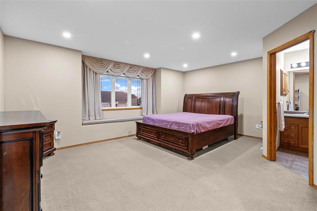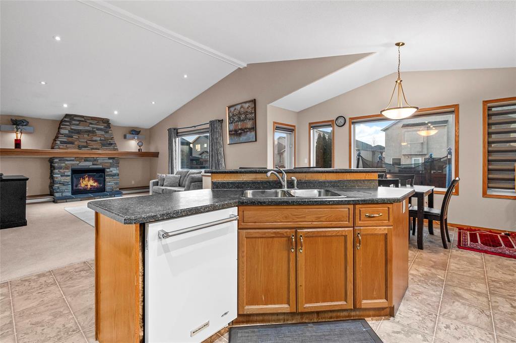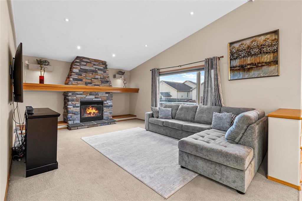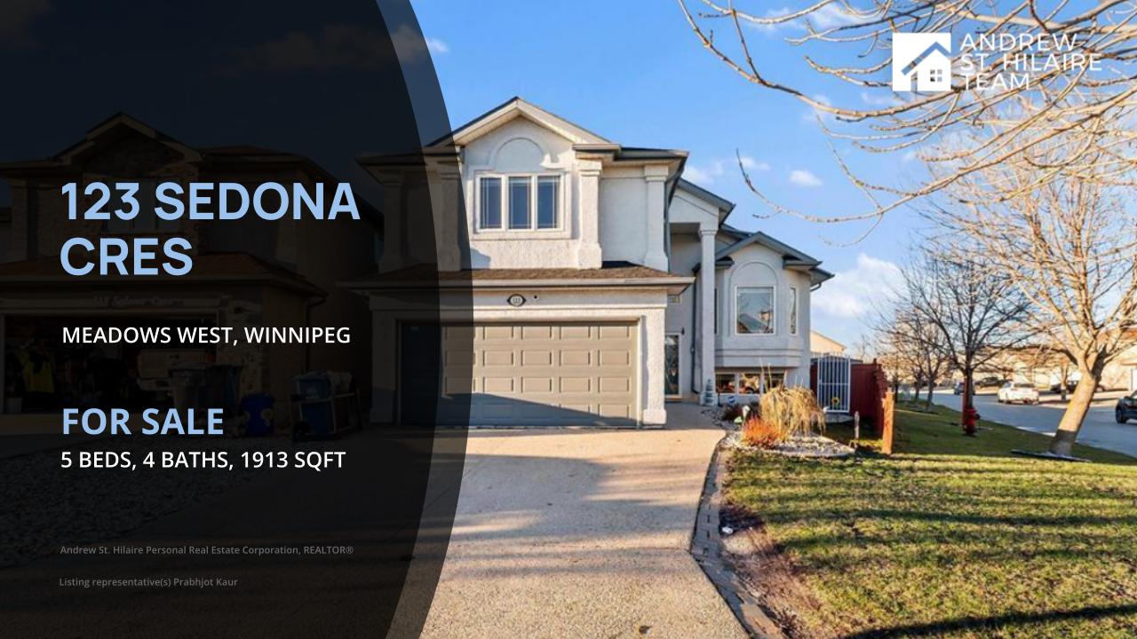 S/S now. OFFERS ANYTIME! Open House: Sunday, Nov 30, 2 4 PM. Welcome to this beautiful 5-bedroom, 4-bath cab-over home located on a corner lot in the highly desirable community of Meadows West, offering 1913 sq. ft. of well-designed living space. The main level, enhanced with ample pot lighting, features a bright living room with large windows, a dining area, a generously sized kitchen with a walk-in pantry, and a cozy family room complete with a fireplace and entertainment area. 2 Bedrooms and a full bathroom complete this level. Upstairs, you ll find a primary bedroom located above the garage, featuring a walk-in closet and an ensuite bathroom. The fully finished basement adds exceptional value with 2 bedrooms, 2 full bath , a large rec room, and a wet bar- ideal for rental income or extended family living. Step outside to a beautifully landscaped backyard with an in-ground sprinkler system and a gorgeous deck with glass railing- perfect for hosting gatherings. The double attached garage provides ample room for parking and storage. Interior Paint (2025) and Shingles (2024). Located close to schools, parks, shopping, and public transit. Shows A++. Measurement +/_ jogs. Book your showing today!