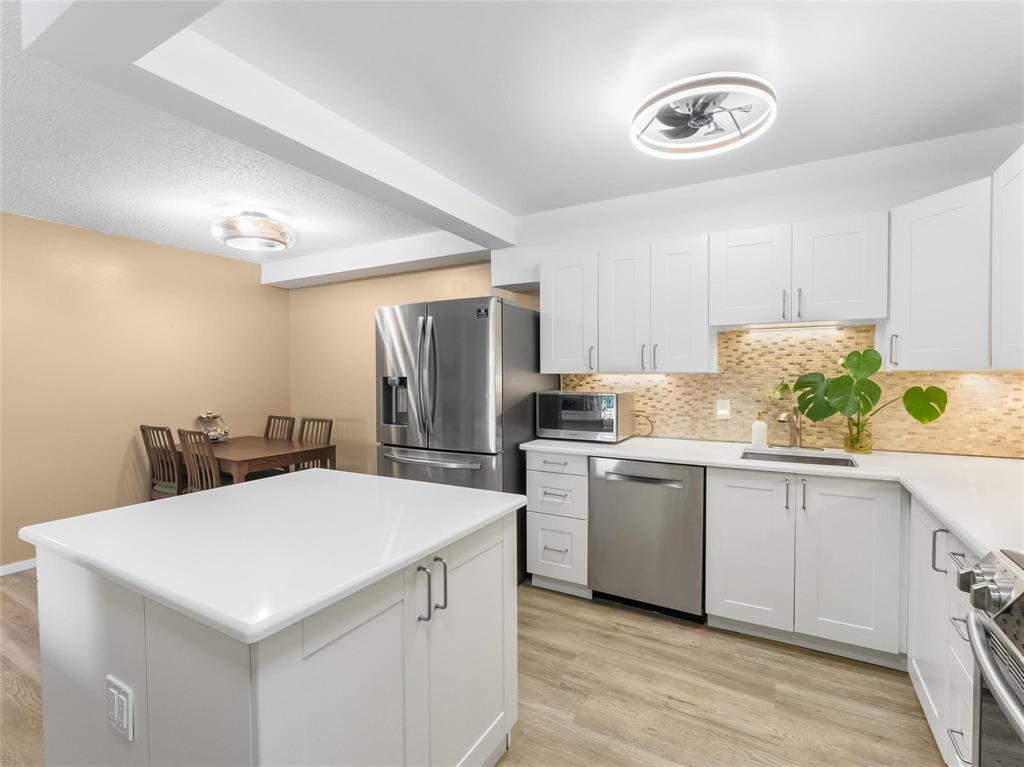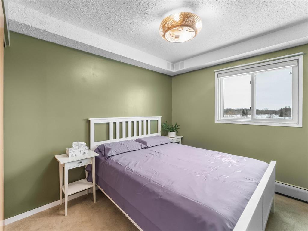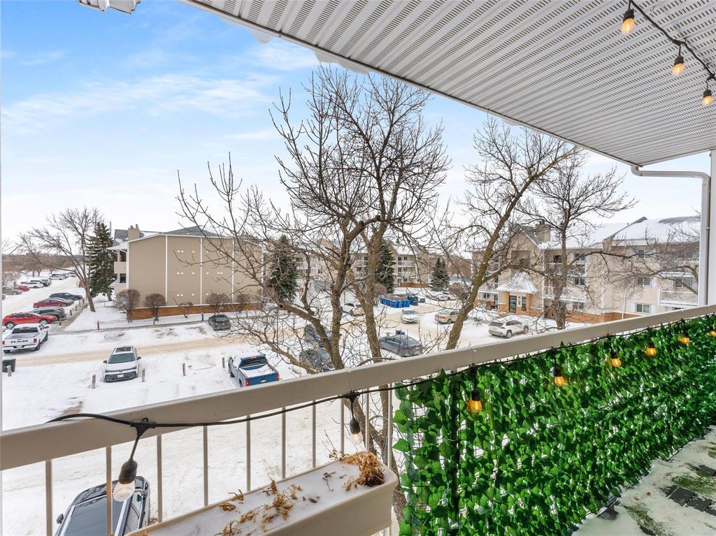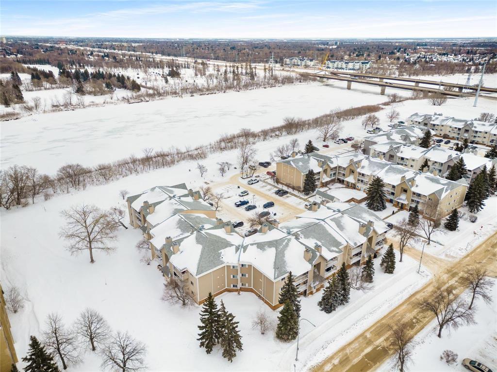 Beautifully renovated 3 bedroom, 1.5 bathroom top-floor condo overlooking the Red River, offering stunning river and treetop views, excellent natural light, and a large south-west facing balcony with new floor tile (2024). This rare 1,040 sq ft unit features a fully remodeled open kitchen (2020) with quartz countertops, large island, tiled backsplash and upgraded stainless steel Samsung fridge and stove plus Bosch dishwasher, flowing into a bright dining area and cozy living room with fireplace and access to the balcony. The primary bedroom has a 2-pc ensuite and walk-in closet; both bathrooms have new quartz-top vanities (2025) and newer toilets (2020). Enjoy vinyl plank flooring throughout (2020), in-suite LG wash tower (2025), a huge in-suite storage room plus balcony storage, newer A/C (2019), updated lighting and ceiling fans, honeycomb blinds, and all new interior doors (2022). Condo fees include heat, water, and a large corner parking stall with plug-in. Pet-friendly complex with pool and gym, in a fantastic location near the University of Manitoba and all amenities.