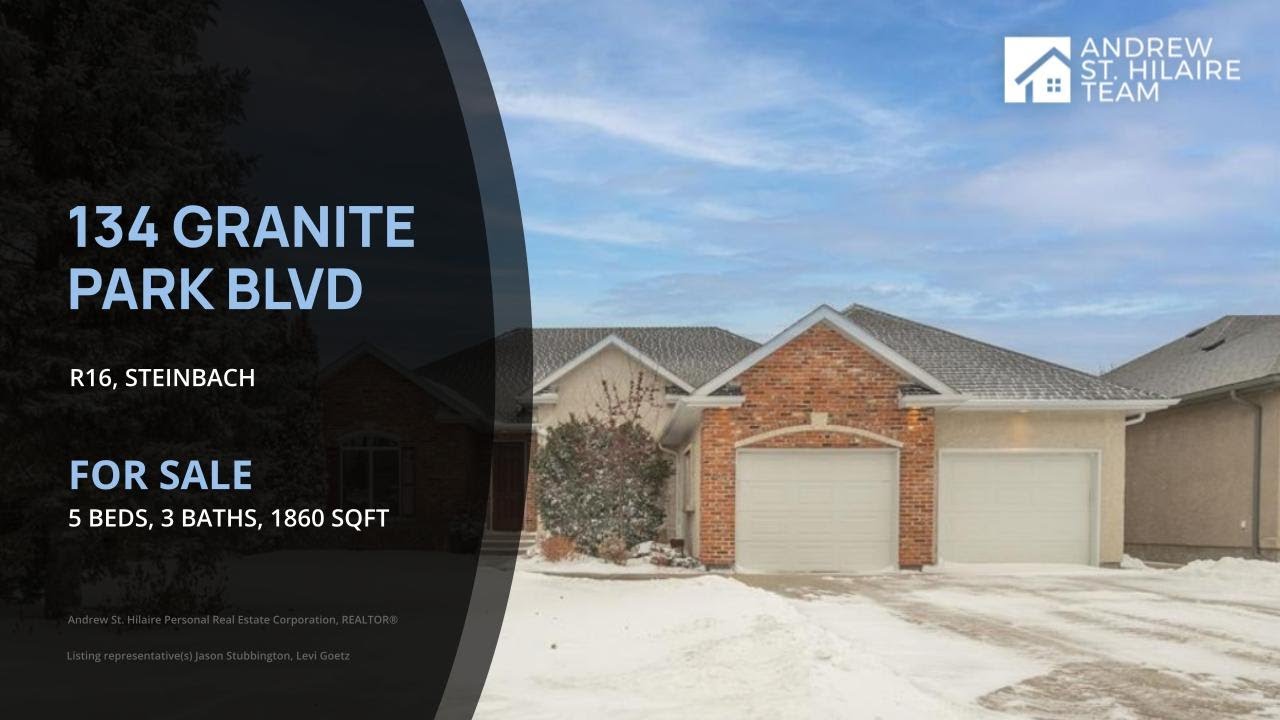 Location, Luxury, Value, 134 Granite Park Blvd has it all. This former flagship GE Homes display home spares no expense. Beautiful masonry work and limestone adorn the exterior of this 1860 Square Ft, with fully finished basement, 5 bedroom, 3 bathroom, classic heritage style home. Walking in you are greeted with warm tuscan vibes throughout. The formal dining room with rich hardwood flooring and impressive wrought iron pillars leads to your huge living room with ornate brick accent walls and custom tile flooring. The chefs kitchen is complete with high end Alder cabinets, a custom wood hood fan, large island and granite counter tops. Garden doors lead to your large private deck that overlooks your private backyard where you can watch the morning sunrise over the field. The primary bedroom has a spa-like ensuite with a large walk in shower, jetted tub and an amazing walk in closet. Outside, the lush lawn with in ground sprinkler system is full of mature trees and shrubs and your backyard neighbour is an alfalfa field. Recent upgrades include downstairs flooring and paint. Don't miss out on your chance to see this gem in one of the best locations in all of Steinbach.
