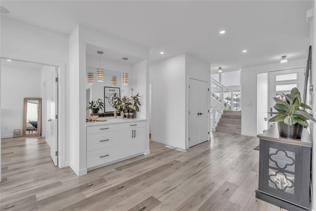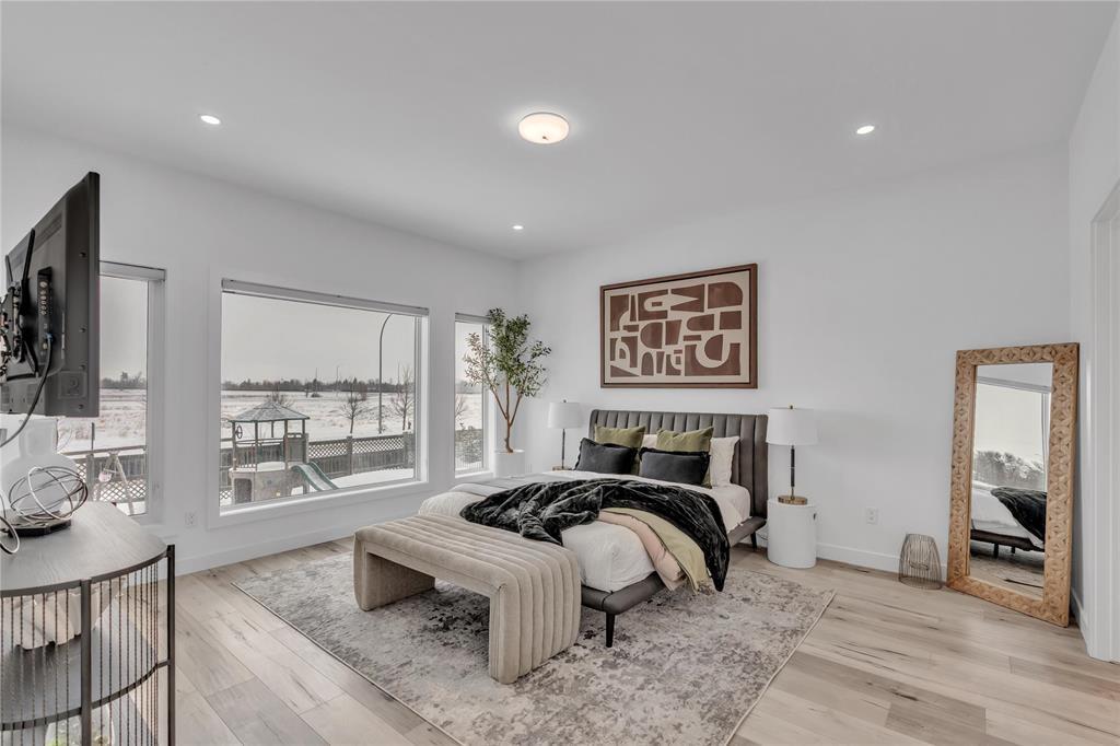 SS Now. Offers as received. Welcome to luxury living in East St. Paul. Nestled on a cul-de-sac and set on a pie-shaped lot, this stunning home offers over 3,000 sqft of refined living space truly what a family home should be. High ceilings, huge windows, and exceptional attention to detail throughout create a bright and spacious feel. The main level also features a formal living area and a primary bedroom with a 4-piece en-suite, offering comfort and convenience. At the heart of the home is the eat-in kitchen, complemented by a fully equipped spice kitchen ideal for passionate cooks and hosting in style. Upstairs, you ll find 3 generous bedrooms and a loft, including a luxurious primary suite with a private balcony, a spa-inspired ensuite w/ heated floors, along with a total of 3.5 bathrooms throughout the home. The unfinished basement offers endless potential whether you envision a home theatre, gym, or additional bedrooms. With stunning curb appeal, an oversized double-attached garage, and a beautifully maintained landscaped yard, this home combines luxury, space, and opportunity in one exceptional package. A must-see!