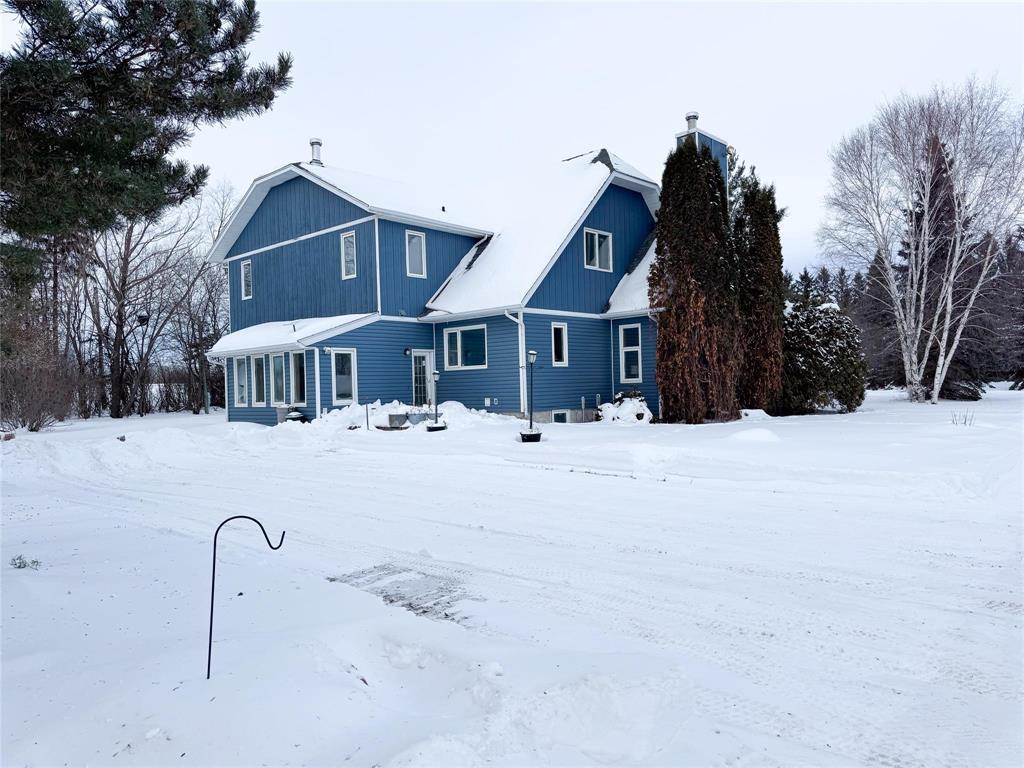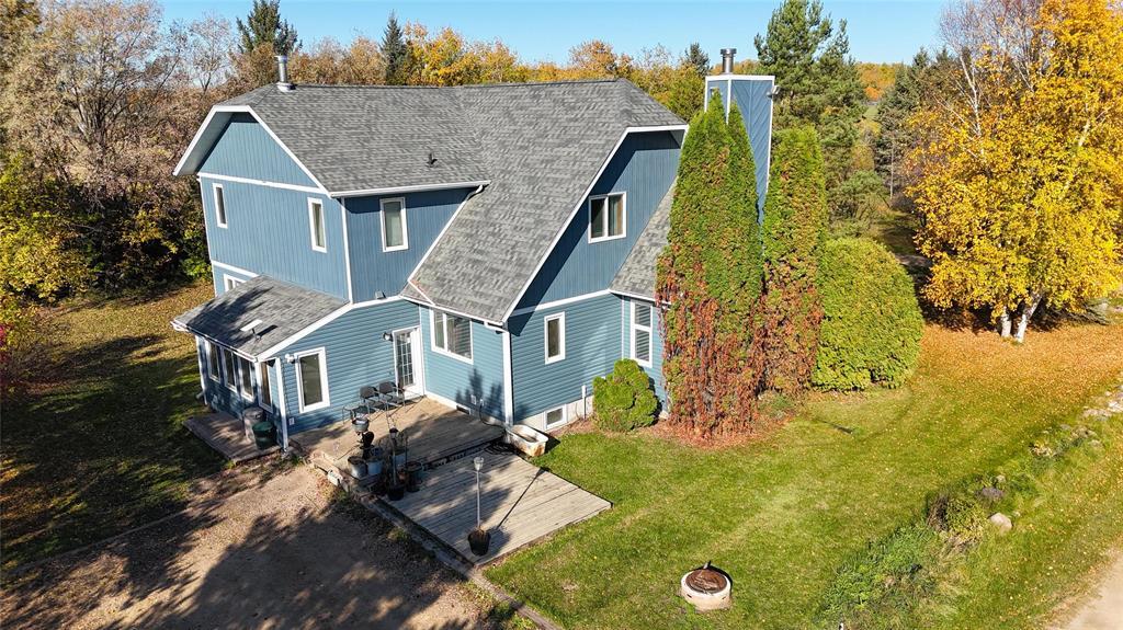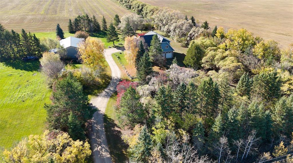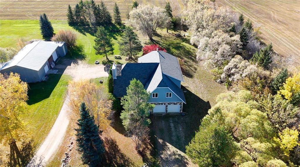 This grand, estate-style home makes a striking impression from the moment you arrive. Expansive livingareas include two dining rooms, a large living room with fireplace and beautiful real wood flooring, plusa sunroom, perfect for relaxing or entertaining. A dramatic staircase leads to an upper level with theprimary suite, three additional bedrooms and convenient upstairs laundry. The primary suite is a privateretreat with ensuite, walk-in closet, and jetted tub. The basement offers abundant space and endlesspotential. With two entries and two forced-air furnaces, comfort and convenience are effortless. Set on aprivate, treed acreage with room for animals or a hobby farm, this home delivers peaceful country livingwith space to roam, explore, and enjoy nature. A rare offering of luxury, privacy, and endlesspossibilities and convenience just minutes from town.
