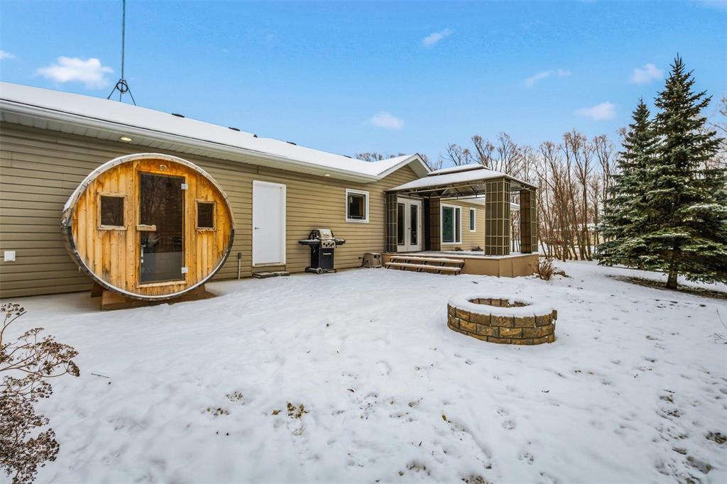 Showings NOW | Offers ANYTIME! | Open House Sat, 12-2pm | Welcome to peaceful country living perfectly positioned between Winnipeg and Portage la Prairie just 30 minutes to either. This charming family home sits on an incredible 1.2-acre lot and offers 4 bedrooms and 1.5 bathrooms. Step inside to an open-concept layout with vaulted ceilings, a warm oak kitchen featuring ample cabinetry and a large island, a spacious dining area, and a sun-filled living room. The primary bedroom includes a walk-in closet and access to a Jack-and-Jill 4-piece bathroom. Three additional generous bedrooms plus main-floor laundry complete the layout. Outside, a mature tree and bush line provides exceptional privacy and a serene setting. Relax by the fire pit, soak in your sauna, and take full advantage of the expansive yard perfect for family activities. Additional highlights include an oversized 26' x 28' double attached garage with in-floor heating and a 2-piece bathroom, plus a single detached garage (13x16). Notable upgrades include in-flooring, paint, hot water tank ( 23), shingles ( 20), and a barrel sauna (negotiable). Come for a tour and stay for a lifetime ??