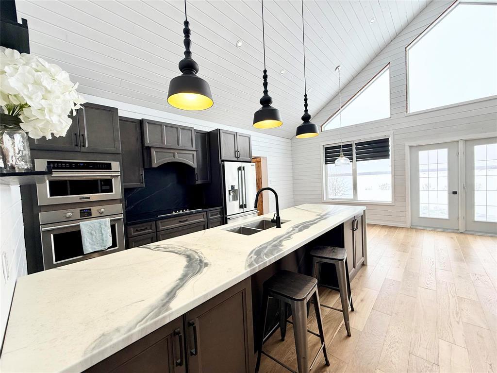 Welcome to this private 142-acre property overlooking Bearhead Lake, situated along the Duck Mountain Provincial Park boundary. This 1,344 sq ft bungalow, built in 2014, has been recently renovated with a new kitchen, updated bathroom, engineered hardwood flooring, central air conditioning, and a spacious new mudroom. The home offers 3 bedrooms, 1 bathroom, vaulted ceilings, and a bright open-concept living space. Additional features include main floor laundry, a free-standing fireplace, and a high-efficiency furnace.The land includes approximately 114 cultivated acres (baled this year, previously seeded to canola) and 27 acres of fenced pasture, providing excellent opportunity for livestock or crop production. Outbuildings include a barn, lean-to shelter, and multiple storage structures.This property combines the comfort of a modern, renovated home with agricultural potential in a peaceful setting, offering stunning lake views and unforgettable sunsets.