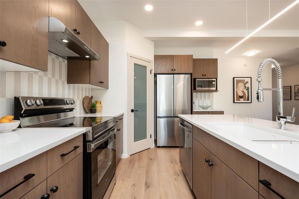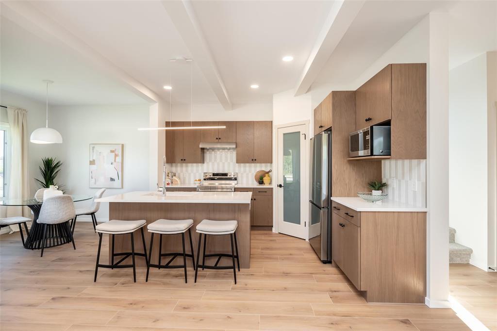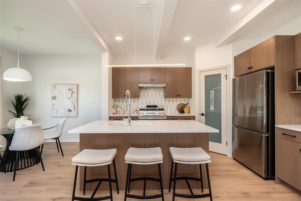 *First time home buyers may be eligible for a GST rebate. Introducing the Altima, Daytona Homes stunning show home located in the desirable community of Highland Pointe. At 1861 sqft of beautifully crafted living space, this 3 bedroom, 2.5 bathroom home showcases a sophisticated blend of style, comfort, and functionality. From the moment you enter, you ll be welcomed by a bold Terrazzo tile statement wall in the foyer an impressive introduction to the home s designer finishes. The main floor features an upgraded kitchen with modern cabinetry, quartz countertops, and an open-concept layout that flows effortlessly into the dining and living areas. The living room is anchored by a tiled electric fireplace and enhanced by a detailed ceiling beam feature, creating an inviting atmosphere perfect for everyday living and entertaining. Large windows fill the space with natural light, while sleek modern lighting fixtures add a polished, contemporary touch. Upstairs, the home continues to impress with generously sized bedrooms and stylish bathrooms complete with quartz surfaces throughout. Outside, enjoy a fully landscaped yard and a deck off the dining room perfect for outdoor relaxation and summer gatherings.