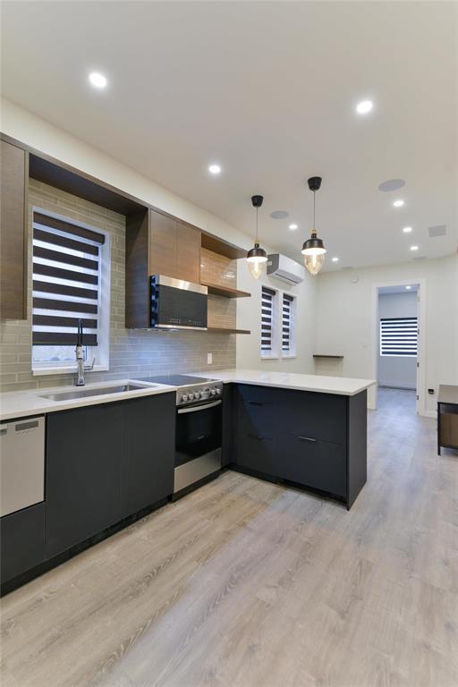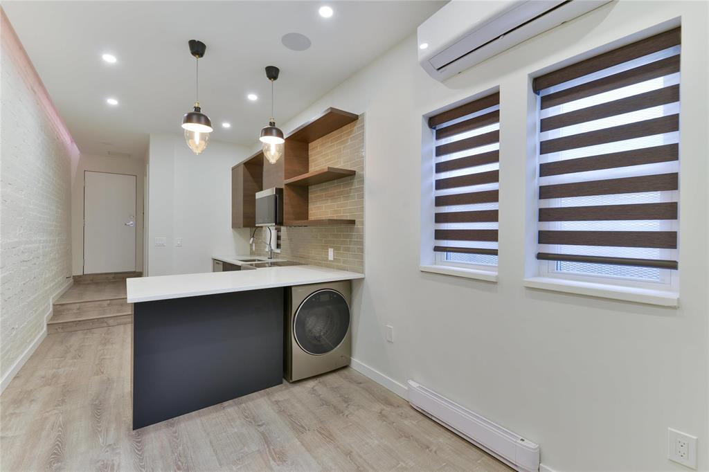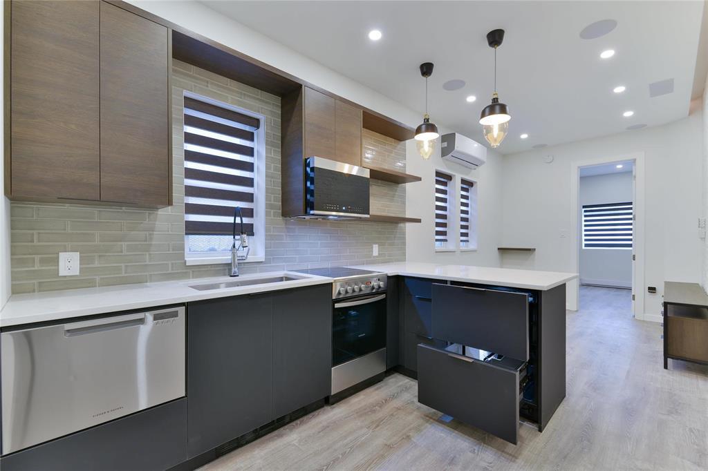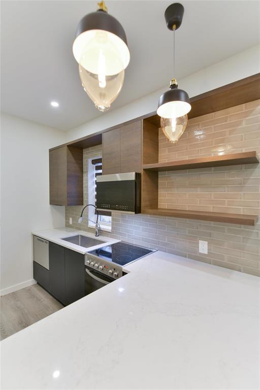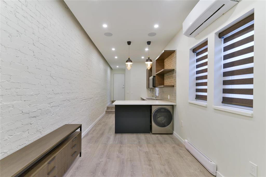 Welcome to 722 Maryland Street a stunning, modern 1 bedroom, 1 bathroom condo offering high-end finishes and thoughtful design throughout. This unit features a sleek European-style kitchen complete with integrated fridge and freezer, built-in dishwasher, quartz countertops, and contemporary cabinetry accented by open shelving. The open-concept living space is enhanced by recessed LED lighting, in-ceiling speakers, and stylish pendant fixtures, creating a warm and modern atmosphere. Exposed brick adds character and charm while large windows bring in natural light. The spa-inspired bathroom is finished with full tile, a glass shower, and heated tile flooring for year-round comfort. Additional features include in-suite laundry, ductless air conditioning, modern flooring, and quality finishes throughout. Ideally located close to public transit, shopping, restaurants, and downtown amenities, this condo is perfect for first-time buyers, professionals, or investors seeking a low-maintenance, move-in-ready property in a central location. A unique opportunity book your showing today!