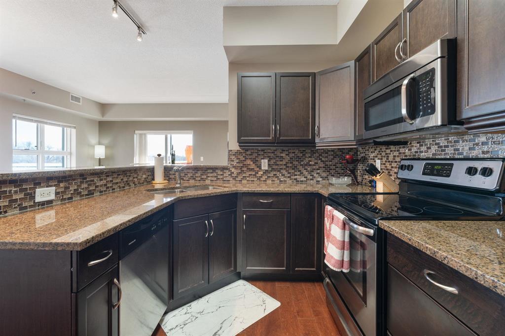 SS now. Offers April 09. Welcome to #201 100 Creek Bend Road, a beautifully maintained corner suite offering southeast exposure and exceptional building quality. Constructed with insulated concrete forms, built on piles, and featuring 8" hollow-core concrete between floors, this building provides superior durability, soundproofing, and long-term value.This well-designed unit offers 2 spacious bedrooms, 2 full bathrooms, and convenient in-suite laundry. The modern kitchen features granite countertops with a breakfast bar, stainless steel appliances, and flows seamlessly into the open-concept living and dining areas. Engineered hardwood flooring runs throughout the main living spaces and bedrooms, adding warmth and elegance.Step outside onto your large concrete balcony, perfect for relaxing or entertaining, complete with propane BBQ allowance, exterior lighting, and an electrical outlet.Additional highlights include heated indoor parking, secure entry, two large elevators, and a garbage chute. Ideally located close to public transportation and just steps from the scenic Seine River Greenway, this home offers the perfect balance of comfort, quality, and lifestyle.