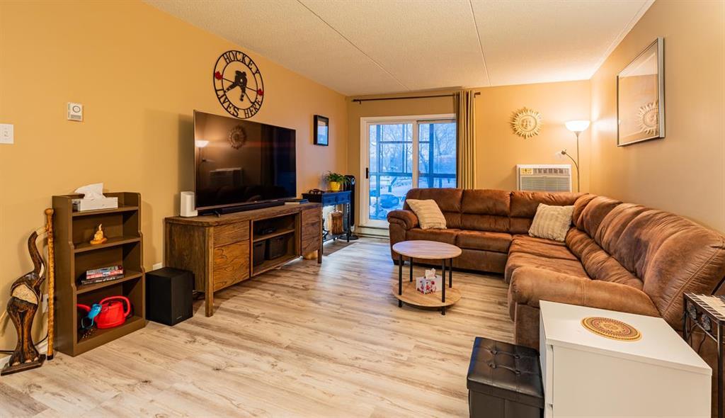Welcome to this well-maintained 2 bedroom, 1 bathroom condo in the heart of Charleswood. Situated on the 2nd floor, this end unit offers a practical and comfortable layout highlighted by new luxury vinyl plank flooring and a bright living and dining area perfect for everyday living. The enclosed balcony provides additional space to relax, while both bedrooms are generously sized and the home reflects pride of ownership throughout. The unit also includes one parking spot and a storage locker, adding to the convenience of condo living. Enjoy the benefit of in-suite laundry with newer washer and dryer, along with a newer AC unit for year-round comfort. This well-managed 55+ building offers excellent amenities including a party room, library, games room, and exercise room. All utilities (heat, hydro, and water) are included! Ideally located just steps from shopping, restaurants, banks, parks, and public transportation, this is a great opportunity for comfortable, low-maintenance living in a prime location. Call today to book your private showing!