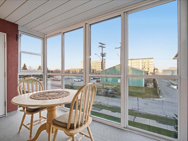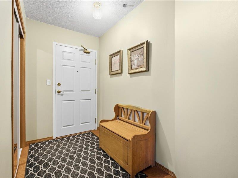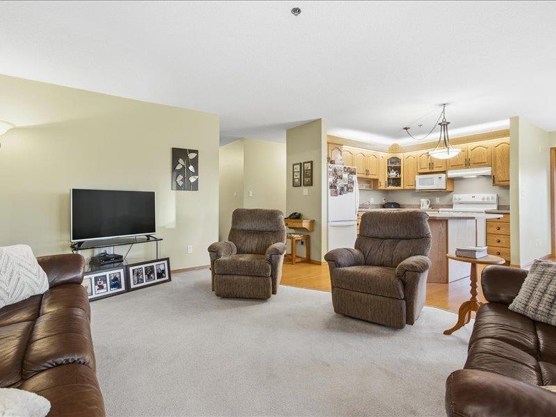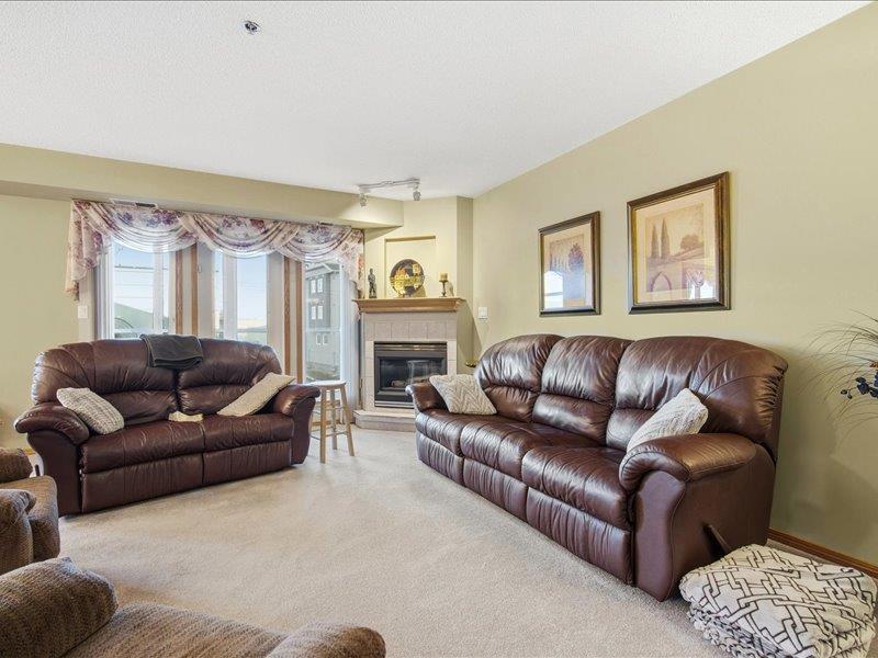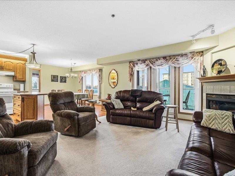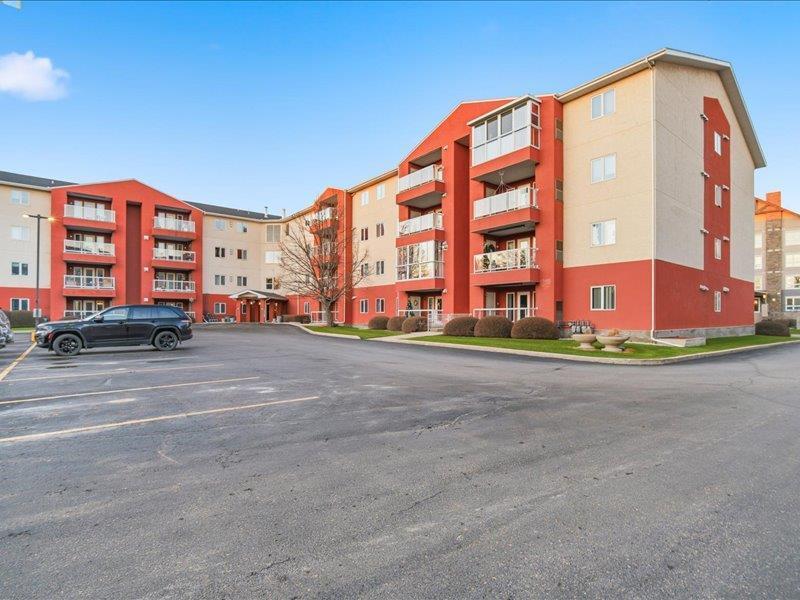 Showing start Monday November 24, Offers to be presented December 1st. All measurements and sq ft are +/- jogs.This second-level condo offers a bright, open-concept kitchen, dining, and living room perfect for entertaining or relaxing in comfort. From the living room, step out onto the enclosed balcony. Primary bedroom with private balcony and three-piece ensuite. A second bedroom, a four piece bath and an office. A separate laundry room with storage for your convenience. Building amenities include: Heated underground parking, fitness room, media/game room, social room with a kitchenette, and an outdoor patio with a pergola! A guest parking lot.Call today for your private showing.