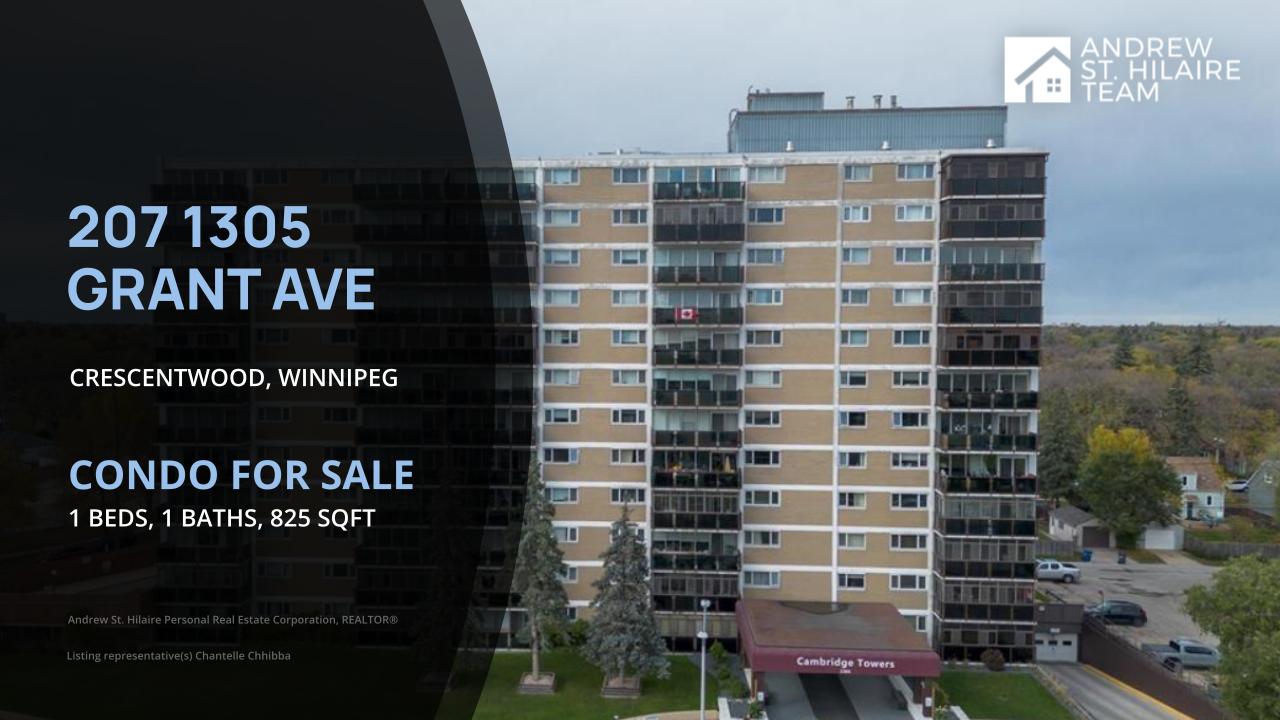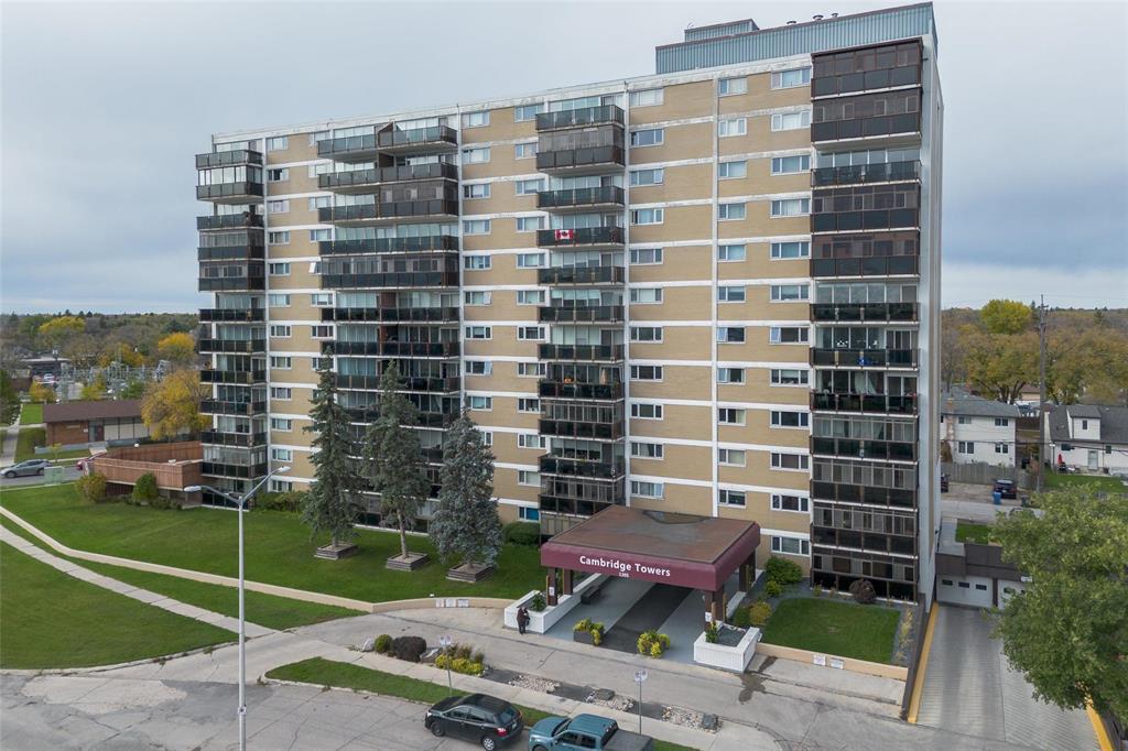 Welcome to Cambridge Towers a bright & inviting south-facing condo perfectly situated across from Grant Park Shopping Centre & Pan Am Pool!This AFFORDABLE concrete build is a spacious 1-bedroom unit featuring beautiful hardwood floors throughout the large open-concept living & dining area, offering plenty of room to entertain or relax.Enjoy the abundance of natural light with wall to wall windows!The king-sized bedroom provides generous space for furniture and storage, making it both comfortable and functional.The kitchen offers loads of counter space and storage, ideal for anyone who loves to cook or bake. The bathroom has been upgraded with a new Bath Fitter shower surround and modern fixtures for a clean, refreshed look. Step out onto the enclosed, sun-soaked balcony a perfect spot to unwind and enjoy your morning coffee. Additional features include outdoor parking, storage, free laundry, pet friendly and access to the seasonal outdoor pool for summer enjoyment. An unbeatable location walk to shopping, restaurants, the Pan Am Pool, library, gyms, and major transit routes. This is an ideal home for anyone seeking comfort, convenience, and value in a central location.
