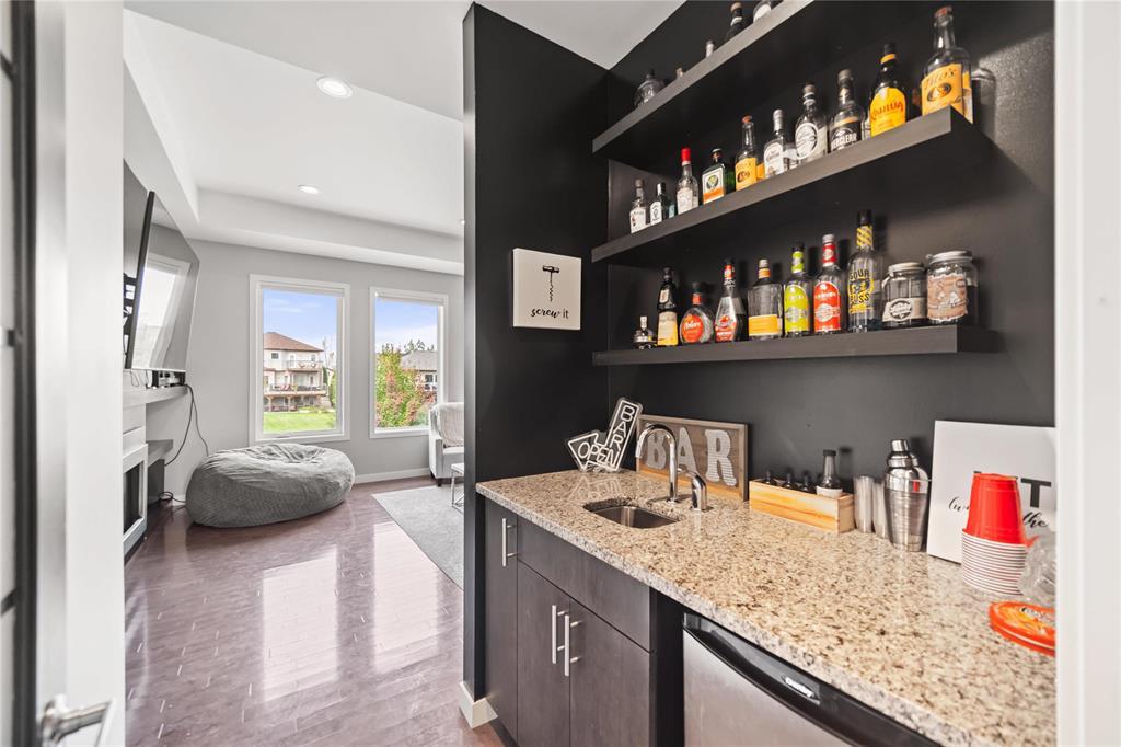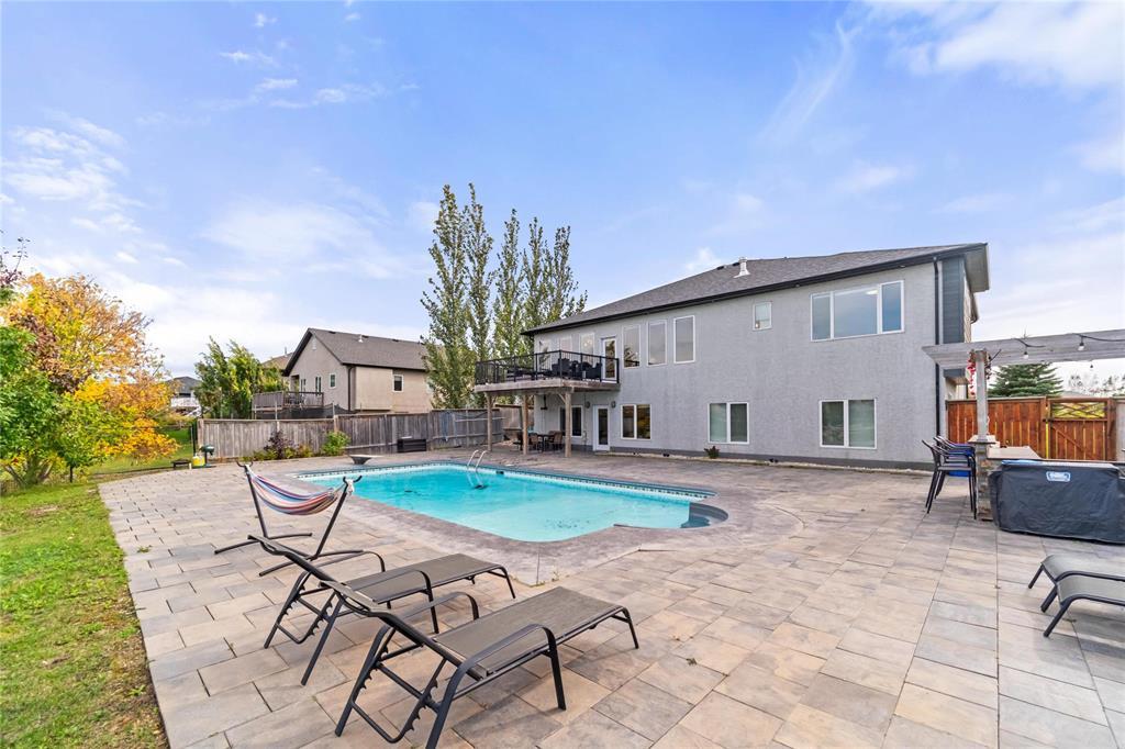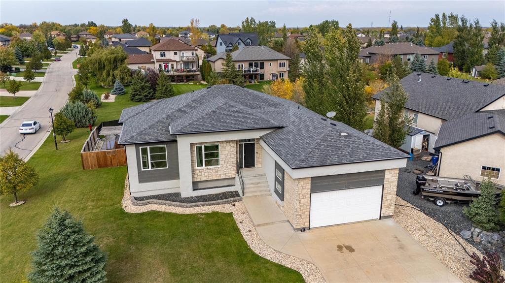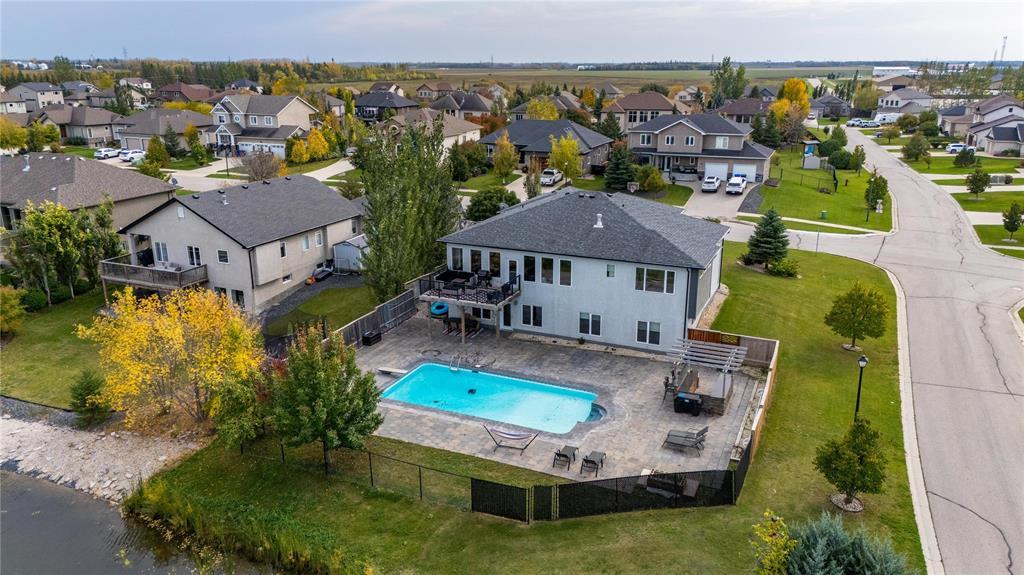 Offers anytime. RARELY AVAILABLE! Welcome to this stunning 1,942sqft 5BR, 3 Bath bungalow with walk-out basement and in-ground pool backing onto lake in the sought-after Aspen Lakes community of Oakbank! This home is designed for both relaxation and entertaining. The open concept main floor features huge windows over-looking the backyard, chef s kitchen with large island open to the dining room and living room with built-in bar. Three spacious BR's, full bathroom and mudroom/laundry room complete the main floor. The walk-out lower level is a true entertainer s dream with a massive rec room, wet bar, theatre/playroom, two additional BR's and full bath. Step outside to your backyard oasis complete with a huge in-ground pool, outdoor tiki bar and sitting area all overlooking the lake! An attached, insulated double garage provides year-round convenience. With incredible views, high-end features and endless space for entertaining, this is the ultimate family retreat in one of Oakbank s most desirable neighborhoods. A definite must see!