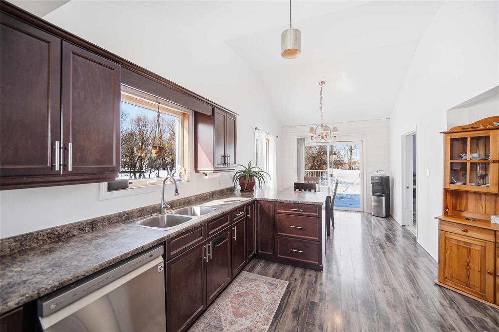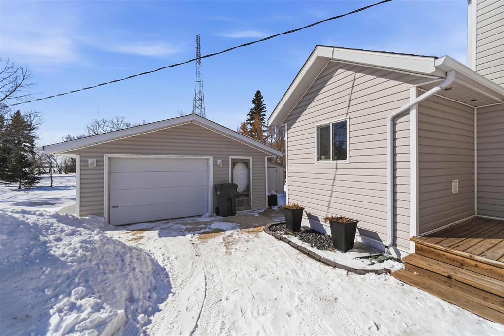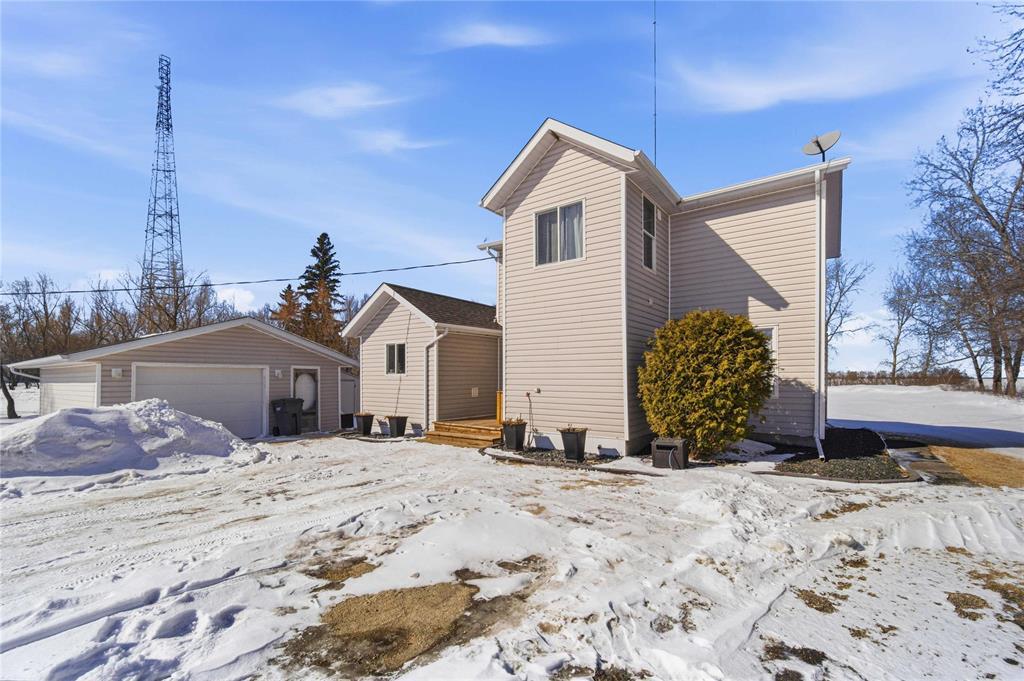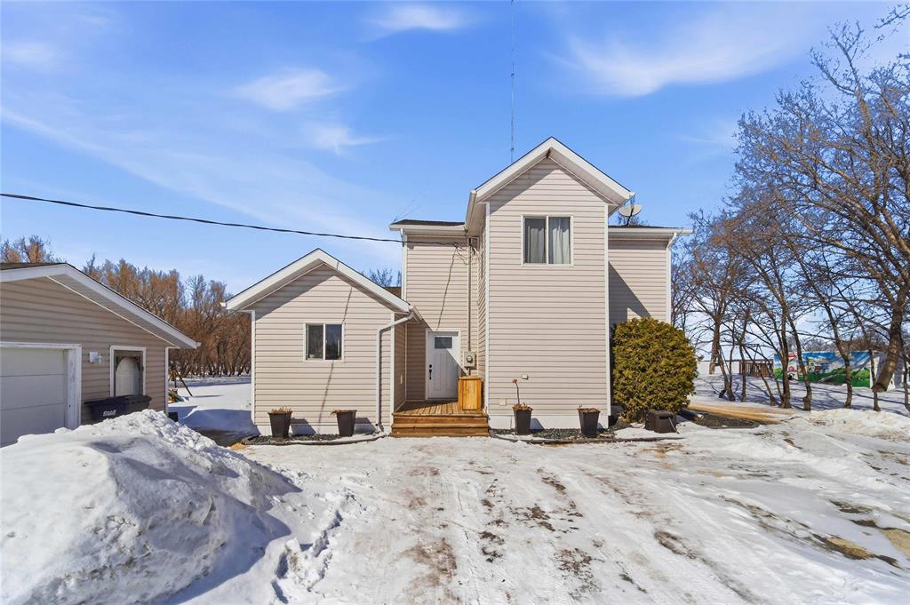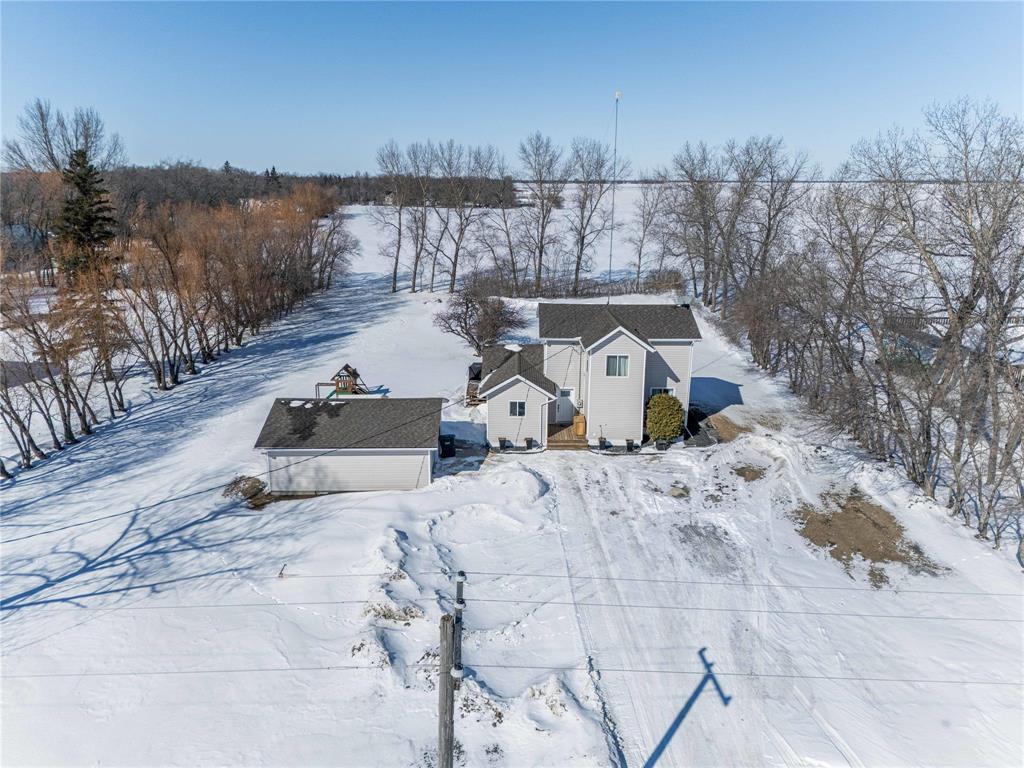 SS. Mar. 19/26, OTP's March 25/26 at 5pm. Escape the city without sacrificing convenience this affordable country home sits on a beautifully treed, mature 1-acre lot. Just 15 minutes south of the Perimeter and only 10 minutes to Niverville, with easy access less than 1 km off Hwy 59. The home offers low-maintenance vinyl siding and a double detached garage conveniently located near the front entrance. Inside, you ll find generous room sizes, large windows that flood the space with natural light, and laminate flooring throughout the main level. The spacious kitchen features a vaulted ceiling, abundant cabinetry and counter space, stainless steel appliances, and a peninsula with seating, seamlessly connecting to the dining area with garden doors leading to a 12' x 16' back deck ideal for summer time entertaining. The main floor also includes a bright living room, bedroom, and a 4-piece bath with laundry. Upstairs, two oversized bedrooms and a stunning 3-piece bath surrounded by windows complete the home. A great opportunity for affordable country living within easy reach of the city. Call now, this home is priced to sell!