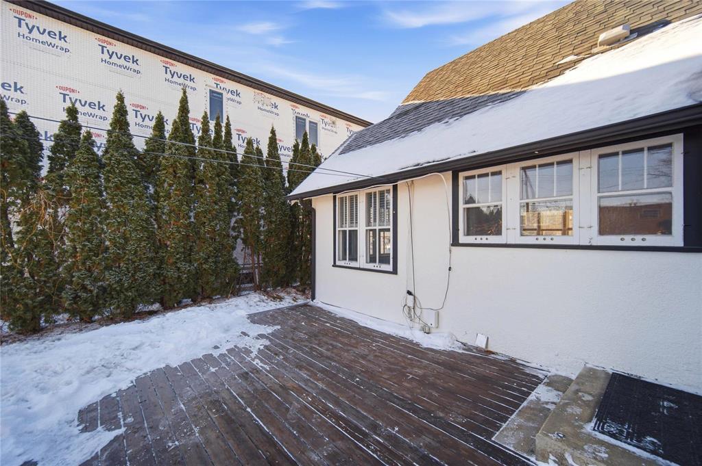 SS. Feb.18/26, OTPs 6pm Feb. 24/26. The perfect find for first-time buyers or growing families! This charming story-and-a-half sits on a massive 50'x155' mature lot in the heart of St. Vital, just steps from local shopping and amenities. Boasting excellent curb appeal with recent shingles and paint (2020), this home is move-in ready. The main floor features a spacious living room anchored by a modern fireplace feature wall with custom storage, gleaming hardwoods & large sunny windows. The open-concept layout flows into a dining area and an updated kitchen, complete with a large peninsula and built-in pantry perfect for entertaining. Through elegant French doors, you ll find a sun-drenched 4-season sunroom, ideal for a home office or den. This level also includes a 3rd bedroom, laundry, and a 4pc bath with heated tile floors. The upper floor hosts two additional generous sized bedrooms (3 total). The dry, partial basement offers ample storage. Step outside to a 14'x20' deck perfect for a summer time BBQ and a fully fenced yard a private oasis for kids and pets. The property includes a single detached garage, shed, and extra parking. Quick possession available! Call now!