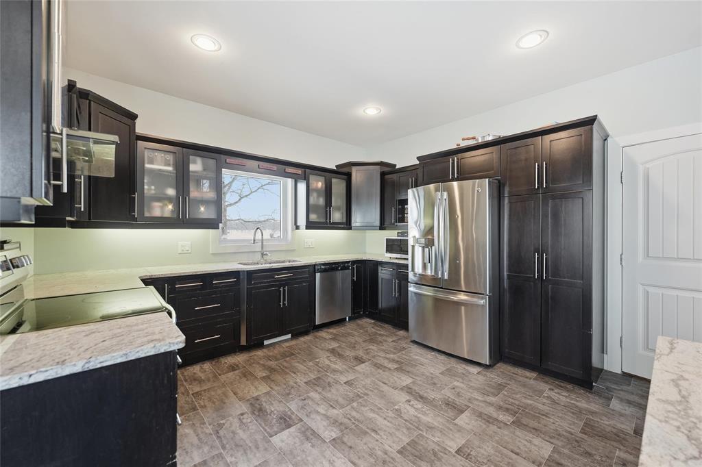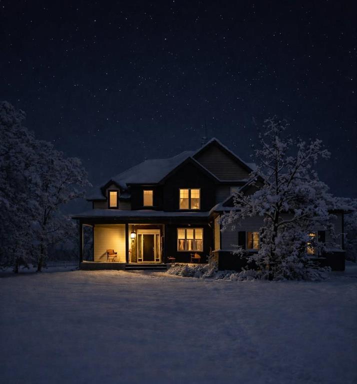 SS Jan 11TH ,Welcome to this impressive 2,530 sq ft two-storey home set on nearly 6 acres, offering space, style, and versatility. This well-designed property features 6 bedrooms, 4 bathrooms, a double attached garage, and a convenient front-yard dog run. Inside, you ll love the bright open-to-second-floor living room with sleek glass railings throughout, creating a modern and airy feel. The kitchen offers espresso cabinetry, granite countertops, and great flow into the dining area with access to the backyard deck. The primary bedroom is a true retreat with vaulted ceilings, private balcony, a spacious ensuite complete with soaker tub and walk-in shower, and a large walk-in closet. Two additional bedrooms and a 4-piece bath complete the upper level. The main floor includes another spacious bedroom, 4-piece bath, mudroom, and deck access. The finished basement offers two more bedrooms, a 3-piece bath, rec area, utility room, and plenty of storage. Outside you ll find an incredible 38 x 60 heated shop with in-floor heat, plumbing, its own holding tank, 16 ceilings, 14 tandem doors, and a mezzanine perfect for work, storage, or hobbies. A rare opportunity offering room to live, work, and play.
