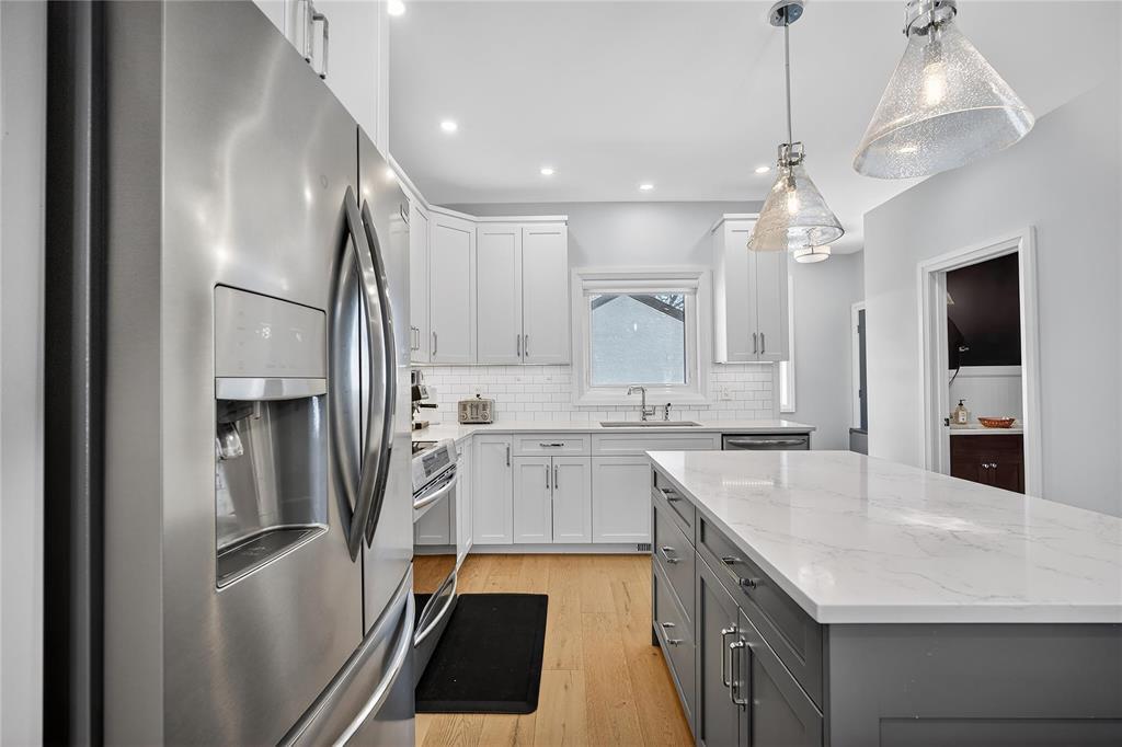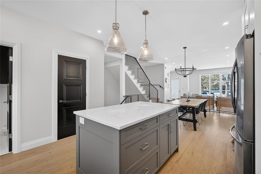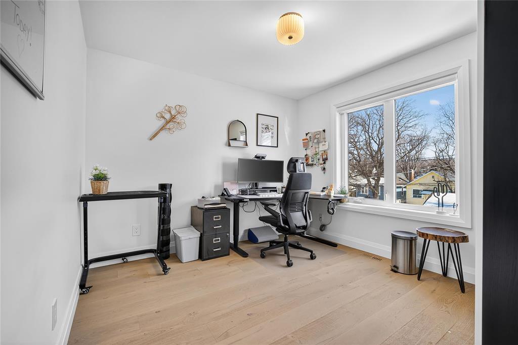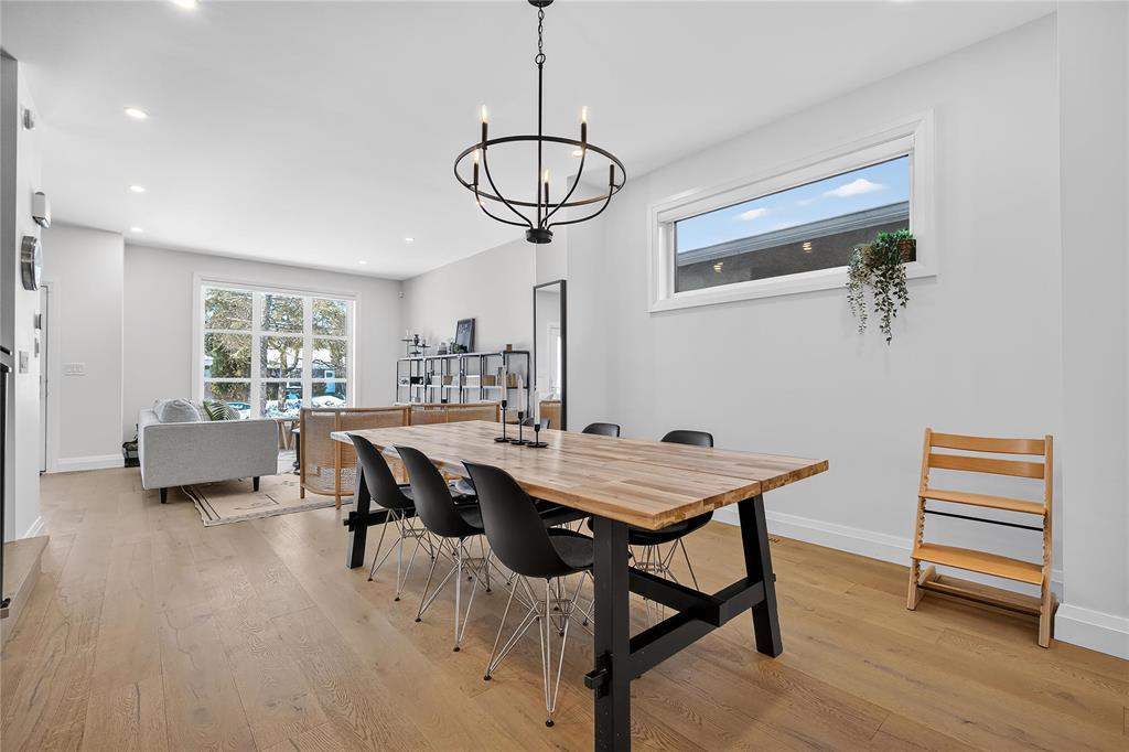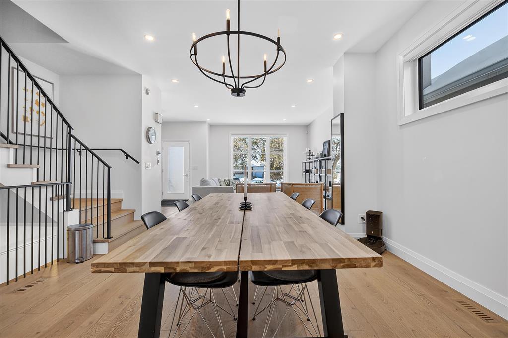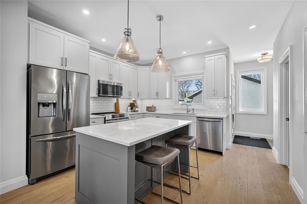 S/S 3/23 OTP 3/30 OH 3/28 2:00-3:30 OH 3/29 1:00-2:30 Truly special River Heights infill by Paragon (2020) in Winnipeg s most desirable neighbourhood. Incredible quality and well-crafted, this home immediately gives you warm feels. Striking white brick facade and large front windows welcome you into an open-concept interior with soaring ceilings, engineered hardwood and upgraded doors and hardware. Thoughtful designer finishes and exceptional lighting create modern, functional living ideal for professionals or those simplifying life. The bright kitchen features soft-close cabinetry, a large island and direct access from a spacious rear entry and covered composite deck. Luxurious primary suite with generous walk-in closet and spa-like ensuite with seamless glass, tile and soaker tub. 2 additional bedrooms with large closet, bath and spacious laundry room complete the upper floor. Finished lower level on a wood sub-floor has large windows, an extra bedroom and bath. It's truly an extension of your living area. Fully fenced yard, 21' x 20' garage w/ EV Charger. Enjoy the tree-lined streets and walkable proximity to Empty Cup and the shops on Academy Rd. A refined turnkey opportunity in River Heights.