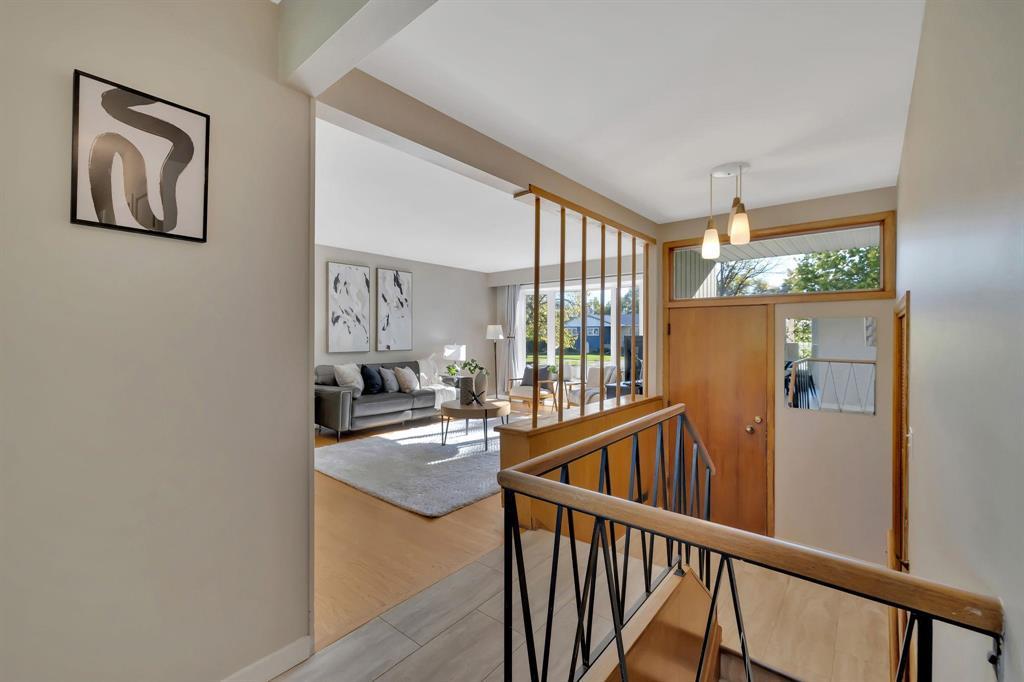 Open house Saturday 10am-12pm and Sunday 12-2pm. Offers welcomed ANYTIME! Built in 1963, this mid-century inspired bungalow blends original character with modern updates that make it feel fresh, warm, and timeless. The sun-filled living room is anchored by a stunning bow window (2023) that floods the space with natural light. The huge eat-in kitchen has been redone with newer flooring, updated cabinetry, and stainless-steel appliances, offering plenty of space for cooking or gathering. Down the hall are three comfortable bedrooms, including a spacious primary suite with its own two-piece ensuite. The main bath is clean, bright, and updated. Tons of updates throughout: shingles, soffits & eaves (25); exterior wood siding paint (24); bow window & front windows (23); furnace & hot water tank (23); kitchen refresh & LVP flooring (16); central AC (15); and patio door (10). The lower level offers incredible potential, a huge unfinished basement with tall ceilings and big windows that s just waiting to be finished into a dream rec room, or home gym. The possibilities (and added equity!) are endless. With its mix of retro charm and modern comfort, this home perfectly balances style and substance.