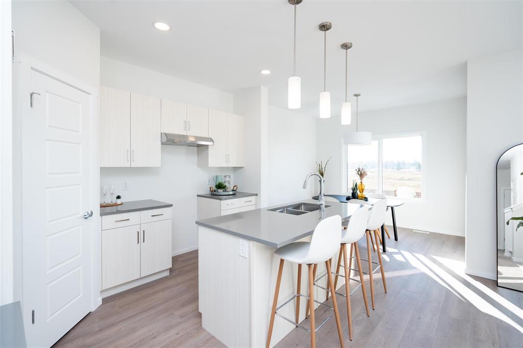 First time homebuyers may be eligible for a GST rebate!! - The Elantra is a beautiful two-storey home that spans 1,723 square feet, with a front attached double-car garage. This home features 4 bedrooms, including one on the main floor, an office, 3 full bathrooms, and 9-foot tall main floor ceilings. Upon entering the house, you will be welcomed by a foyer that provides access to the double car garage. The kitchen has ample pantry space, an eat-in island, and it is open to the great room and dining nook, making it ideal for family gatherings. Moving upstairs, you will discover the remaining 3 bedrooms, laundry area, and office. The Primary Bedroom boasts a walk-in closet and an ensuite with double sinks. This home is completed with the added convenience of a side entrance.