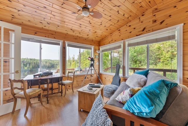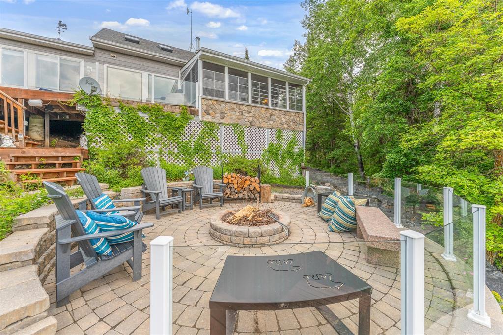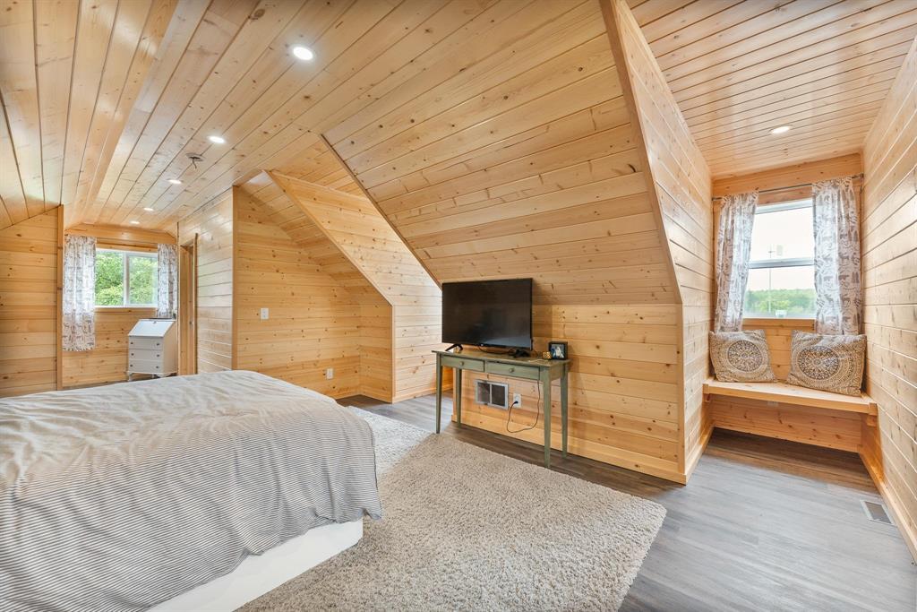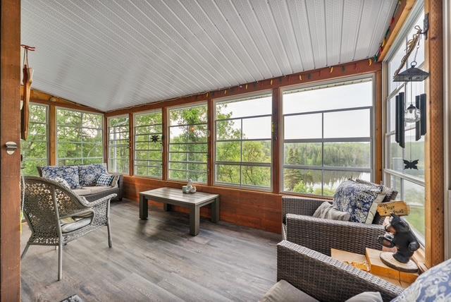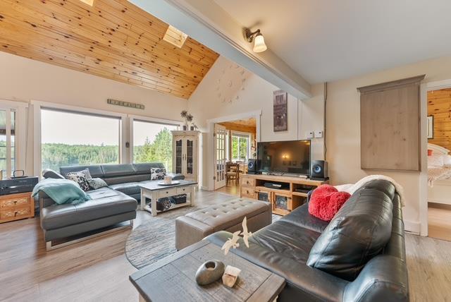 This beautifully updated year-round Waterfront retreat offers panoramic south-facing views of Bird River. Nestled among the trees for ultimate privacy, this Turn-Key 1,432 sqft Home/Cottage features 3+ Bedrooms, 2+ Baths and 3-Car detached heated Garage with 455sqft of BONUS living space above. Step inside into a bright open-concept living space where large windows capture breathtaking water views. The Kitchen showcases beautiful Knotty Alder cabinetry, granite countertops and warm knotty pine accents that create a true cottage feel. The Dining area is ideal for hosting family meals, while the bright and airy Living Room w/woodstove is perfect for entertaining. The Main floor offers 2 large Bedrooms, a Sunroom to soak-in the scenery year-round, a 3-season Porch & 3pc Bath completes this level. Upstairs, the spacious loft provides a great flex-area and the Primary suite features a 3pc Ensuite and private balcony overlooking peaceful surroundings. Above the heated Garage built in 2020, there is plenty of room for guests or family- complete with 3pc Bath. Hang out on the wrap-around deck, around the firepit, or at the dock and enjoy nature at its finest. All Furnishings included. Seller is a Registrant.