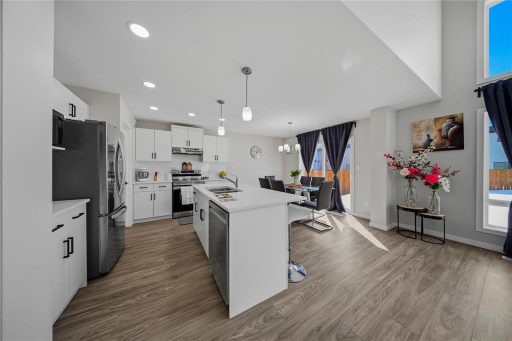 **SHOWINGS START NOW | OFFERS AS RECEIVED **Built in 2021, this stunning home offers 1,693 sq ft of thoughtfully designed living space with 4 bedrooms and 2.5 bathrooms. Step into a bright, open-concept layout featuring a breathtaking great room with soaring ceilings that create an airy, inviting feel. The modern kitchen is beautifully finished with quartz countertops throughout and a stylish tile backsplash perfect for both everyday living and entertaining. A main-floor bedroom provides flexibility for guests or a home office. Upstairs, the spacious primary suite features a walk-in closet and private ensuite, while two additional bedrooms share a full bathroom. A bonus loft and convenient second-floor laundry complete the upper level. Additional highlights include a 20 x 24 garage, durable laminate flooring, and a wood-capped staircase. The fully fenced and landscaped yard is move-in ready, and the unfinished basement offers endless potential for future development.Book your private showing today with your favourite realtor!