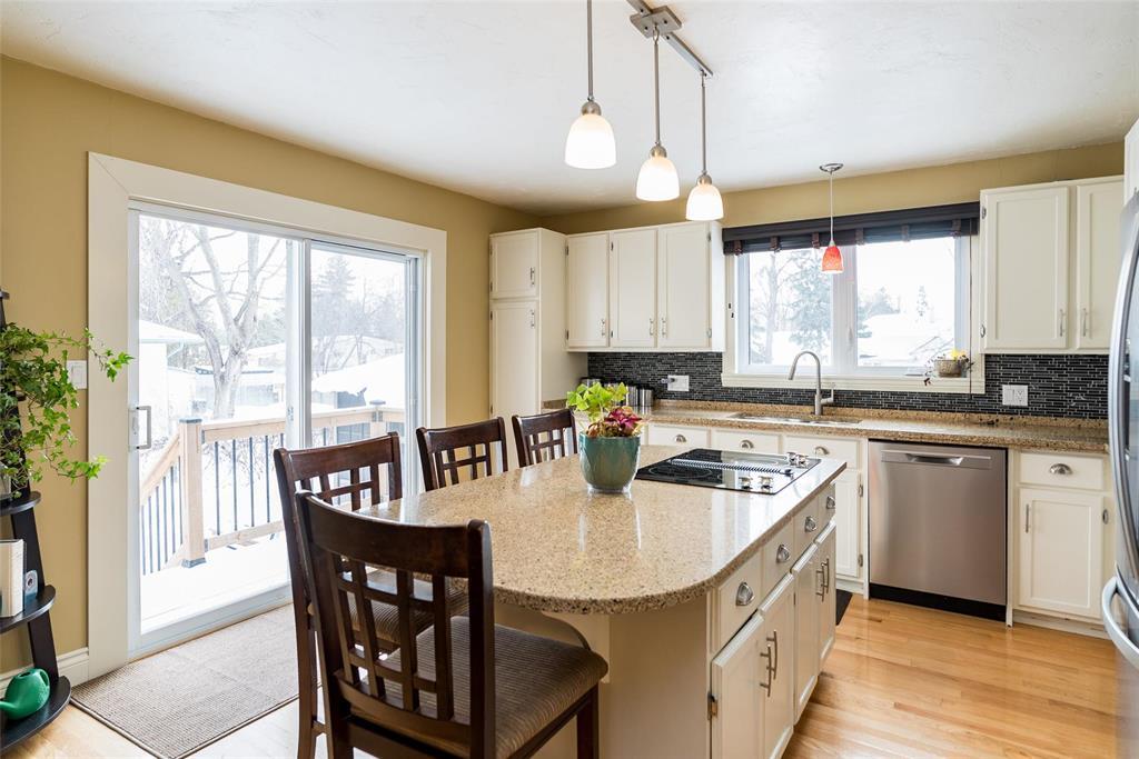 Showings start Feb 24. Offers Mar 3. Welcome to this amazing, 3 bed, 2.5 bath turn-key 3-level split in desirable Bright Oaks. Vaulted ceiling, HWF's & a cozy gas FP in LR. An updated kitchen offers quartz countertops & an island that seats 4, complete w/Jenn Air cooktop. SS appliances w/built-in oven & microwave, garburator, fridge ('20), dishwasher ('23). The expansive primary bedroom impresses w/2 double-width lighted closets, 5-pce ensuite w/jetted tub & double sinks set in a Corian countertop. Lower level is fully finished & offers large windows, rec rm area w/a pool table that stays, electric FP & dry bar. An attached insulated O/S double garage provides ample storage. Patio door off the kitchen leads down to a stone-look patio & gazebo. A gate leads out the back yard onto Twin Pines GREENSPACE. Located close to St. Vital Park, transit & shopping. Ask your Realtor for the list of upgrades!
