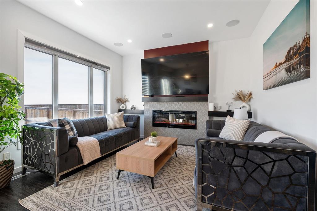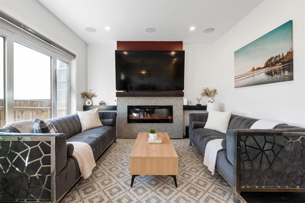 Offers April 14. OH Sat/Sun 1 3 PM. Welcome to this beautifully upgraded 1,534 SQFT two-storey home in the desirable community of Bonavista. Designed with both style and functionality in mind, the main floor features an open-concept layout highlighted by a stunning entertainment unit with a built-in fireplace, perfect for everyday living and hosting. The modern kitchen offers ceiling-height cabinetry, quartz countertops, a dedicated wine rack, and premium finishes throughout.Enjoy built-in ceiling surround sound speakers that enhance your living experience, adding a touch of luxury and convenience. Quartz surfaces continue throughout the home, creating a cohesive and upscale feel.Upstairs features a spacious primary bedroom with a large window, walk-in closet, and private ensuite. Two additional well-sized bedrooms and a full common bathroom complete the upper level, along with the convenience of second-floor laundry. The home is freshly painted and move-in ready.Front and back landscaping are fully completed, including a deck, stone patio, and fencing making this home truly summer-ready for BBQs and outdoor entertaining from day one.Basement awaits your personal touch.