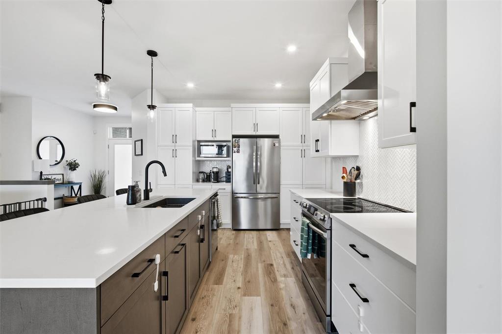 SS Fri Oct 17. Stunning former Kensington show home, built in 2024, offers just under 1700sqft, a triple att garage, 5 bedrooms, & 3 bathrooms, perfectly located in the desirable community of Grande Pointe Meadows.Step inside to an open-concept layout featuring two-tone cabinetry w/quartz countertops & a tile backsplash, paired w/upgraded lighting & faucets throughout. The bright & spacious living room overlooking the south facing backyard showcases a beautiful fireplace, while the dining area opens to a covered deck & stone patio, a landscaped & fenced backyard complete with an in-ground sprinkler system.The primary suite includes a walk-in closet and a stylish 3-piece ensuite. Two additional bedrooms (one with a walk-in closet), a 4-piece bathroom, & a large mudroom w/ main floor laundry complete the main level.The fully finished lower level provides incredible extra space for your family to enjoy, featuring two additional bedrooms, both w/walk-in closets, a 3-piece bath, w/tiled shower, & a spacious rec area perfect for movie nights or a play space.Just minutes from Sage Creek and all city amenities this thoughtful designed home make this the perfect space for your growing family.