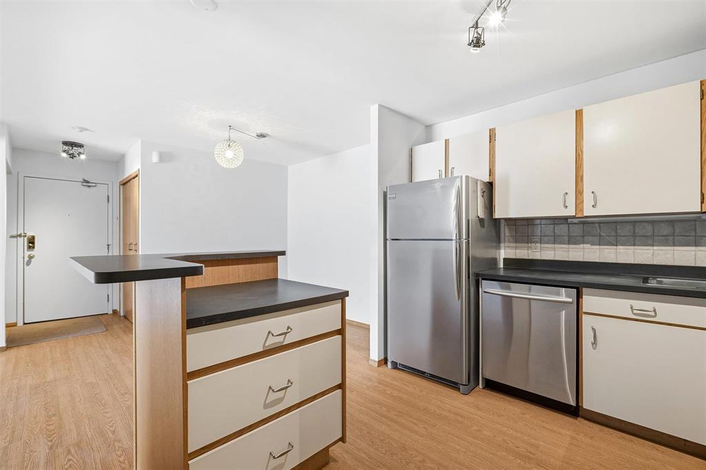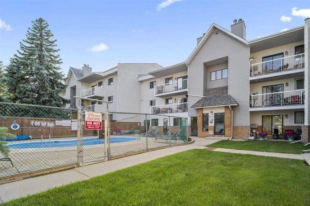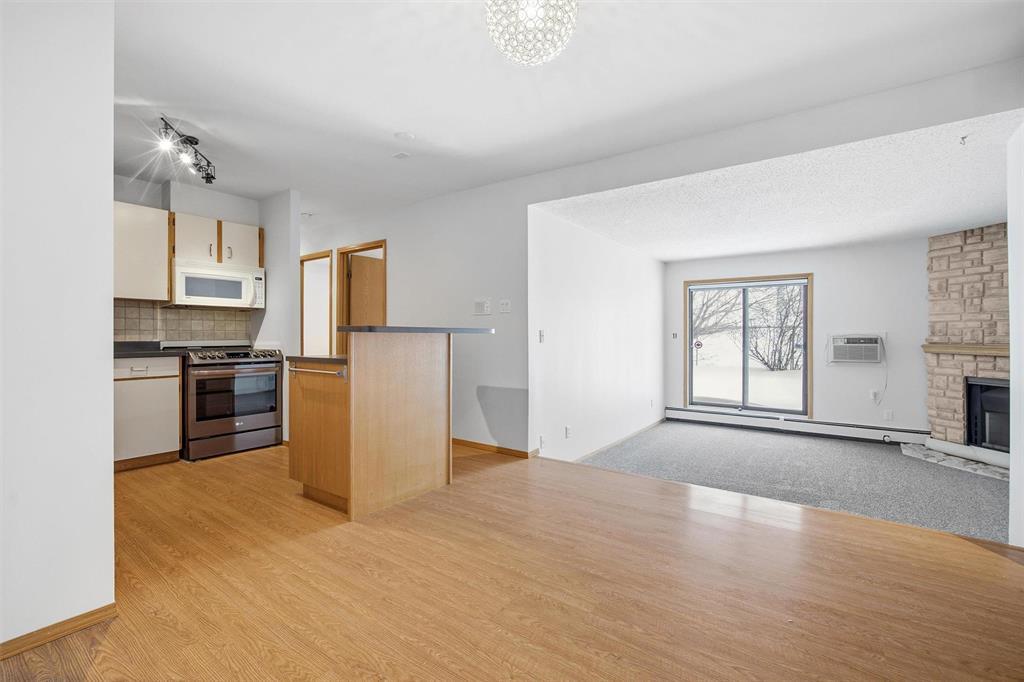 Showings NOW | Offers ANYTIME! | Step into this beautifully updated MAIN FLOOR (with green space!!), 890 sq ft, 2-bedroom condo offering stylish, low-maintenance living in what could be considered the best location in the entire complex! This pet-friendly unit (allowing 1 dog or 1 cat) features in-suite laundry, dedicated parking, updated flooring, and an open concept kitchen which is rare for these units! The inviting sunken living room with cozy wood-burning fireplace opens directly onto your private patio perfect for morning coffee or evening relaxation. The bathroom is clean and updated, while the spacious primary bedroom includes a walk-in closet! Your spare bedroom is also spacious for kids, or an office. Enjoy incredible building amenities including an outdoor pool, gym, sauna, and ample visitor parking. Located just minutes from the University of Manitoba, Princess Auto Stadium, and the Pembina strip, this is an ideal opportunity for students, investors, or first-time buyers. Move-in ready and packed with the features condo buyers want book your private showing today.