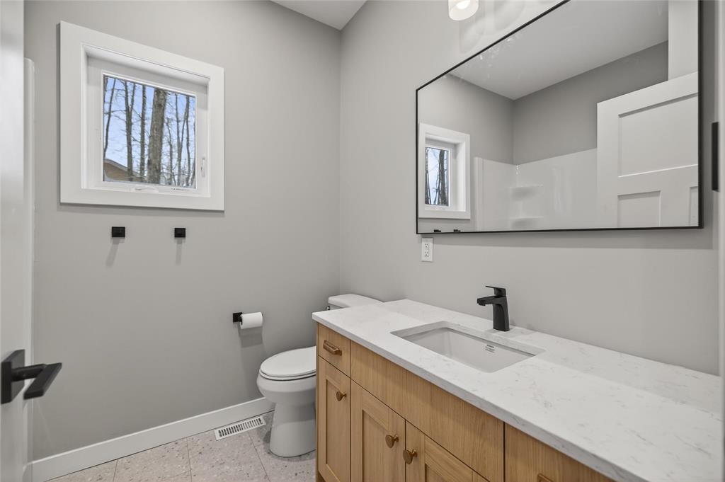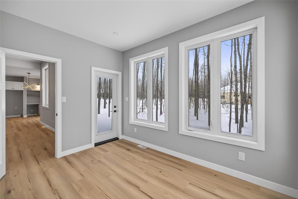 Welcome to your dream retreat in the heart of Pinawa! A luxurious yet inviting home designed for year-round living or the perfect Whiteshell getaway. Nearly 1,800SF of thoughtfully crafted space offers 3 bedrooms, incl. a serene primary suite w/ a large walk-in closet & spa-inspired ensuite w/ double sinks, stand-up shower, & elegant tile. The open-concept main floor blends a warm, sunlit kitchen wood and white cabinetry, quartz counters, coffee nook, and striking backsplash with a spacious dining area and cozy family room featuring an electric fireplace. A beautiful sunroom off the living area, paired with windows throughout, creates seamless indoor-outdoor harmony.Outside, a striking exterior of white board and batten, complementing stone, and white stucco is accented by black garage doors, trim & front door. A massive 38 24 triple garage with epoxy floors, an oversized driveway, and a beautifully treed pie shaped lot complete the picture (Front Width 72', Back Width 96', Depth 141'). Enjoy Pinawa s 4-season lifestyle: boating, kayaking, golf, hiking, pickle-ball, snowshoeing, ice fishing, & more. Your permanent residence or cherished cottage awaits!