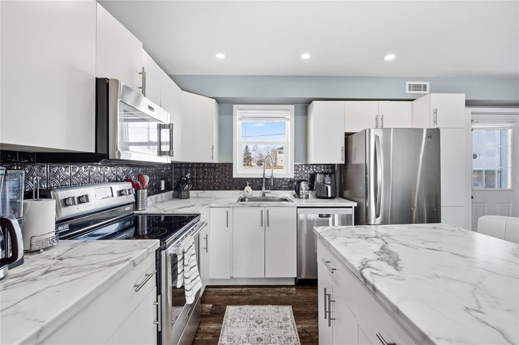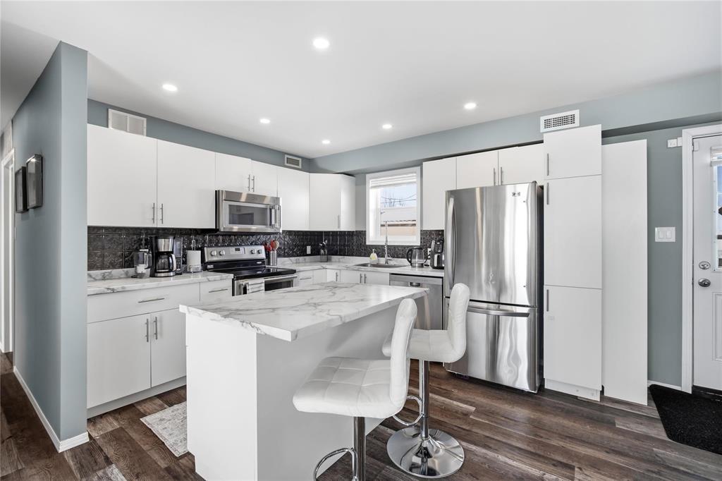 S/S 2/26 OTP 3/4. Open House 2/28 1-3 PM. What a unique property! Come and enjoy a fresh spin on a solid family or starter home. Are you looking to downsize? This could be the one. One-level living at it's finest, 919 sq ft bungalow offering 3 bedrooms, open-concept living-dining-kitchen, and tasteful renovations throughout including a new kitchen with stainless appliances, ample cupboard space and an island for optimal prep space. Tastfully upgraded bathroom, nice vanity and shower surround. Larger updates include windows, mechanical, among other recent touches, like washer and dryer. Sitting on a rare, spacious 48' x 173' yard with no rear neighbours. HUGE BONUS: Two garages! one double (22X20) and one single (20X14). Schools (all levels), shopping and amenities along Regent and Nairn are close by. Great opportunity in a welcoming community this home is move-in ready. Book your showing today, this home won't last long.