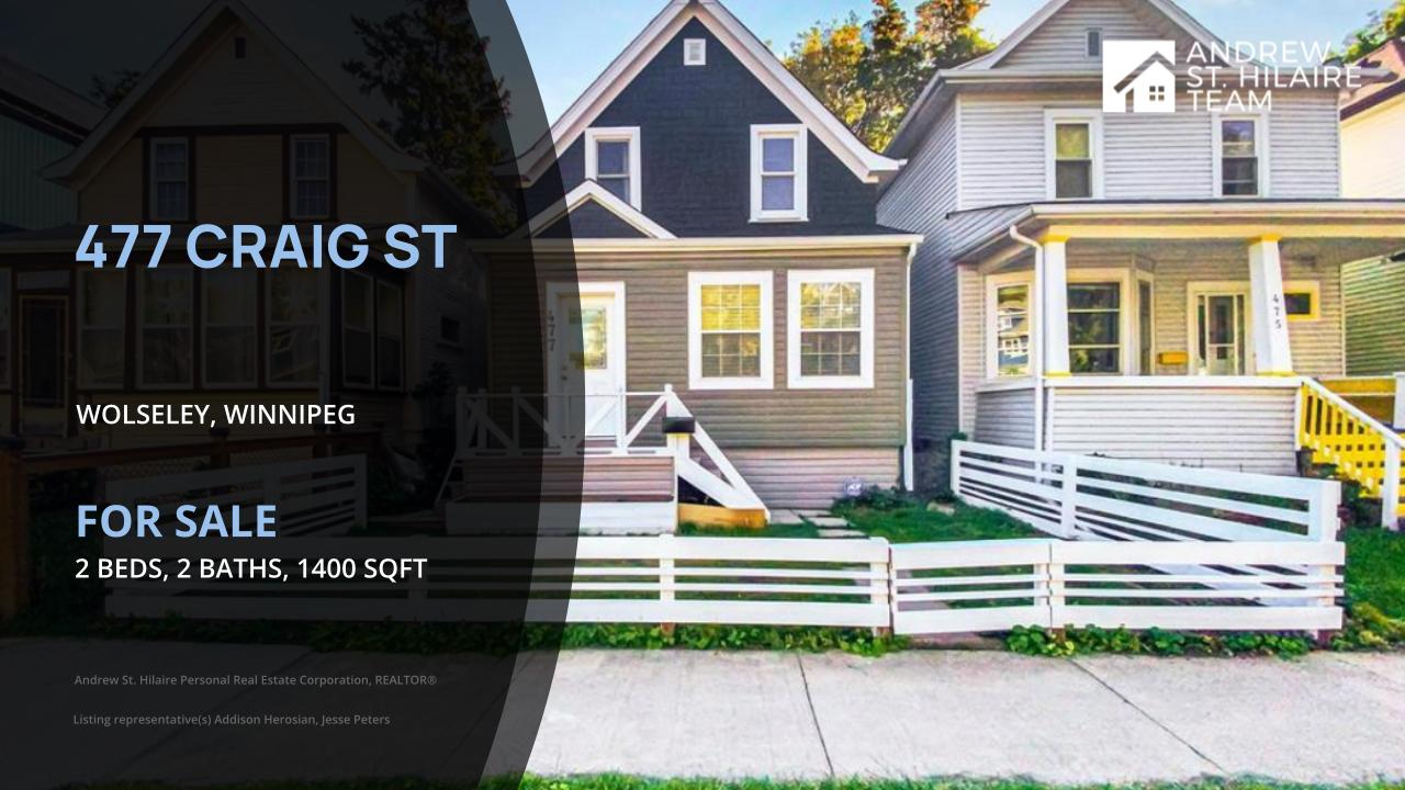 Showings Now | Offers Anytime! | 24 hour notice for showings | Wolseley duplex zoned R2 and fully renovated, generating $2,550/month in rent with the main floor tenant paying $1,350 and the upper suite paying $1,200, with the landlord currently covering approximately $300/month in combined hydro and water; perfect for living in one unit and renting the other or holding as a strong cash-flowing investment in an easy-to-rent location. Updates include high-efficiency furnace, all electrical (two 100-amp panels with copper wiring), full plumbing, windows, basement Roxul insulation, shingles (2020), exterior paint, updated kitchen cabinets in both suites, two newer A/C units, main floor flooring, massive walk-in closet, Spray foam insulation, new upper-suite entry door, and fresh paint and trim throughout everything is done. Main floor suite features 1 bedroom, a huge walk-in closet, 4-piece bath, deck space, and rear entrance; upper suite offers 1 bedroom, 4-piece bath, and a large private balcony. Additional perks include parking for two vehicles, shared laundry, shared basement storage, and a straight, solid structure in one of Winnipeg s most desirable rental neighbourhoods.