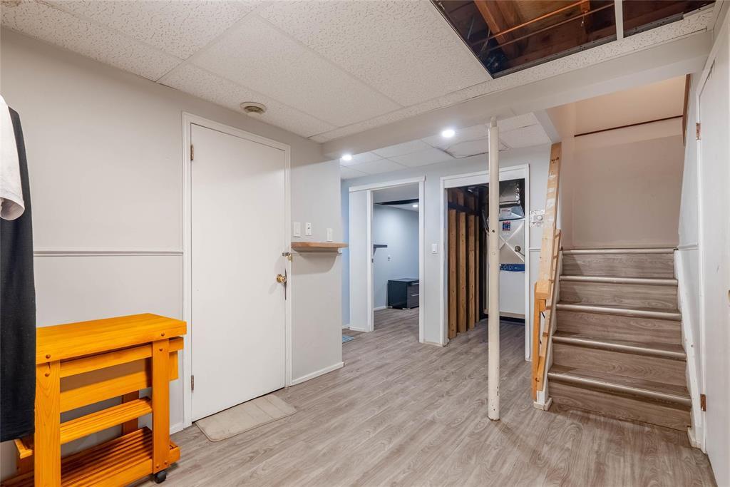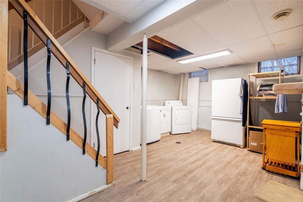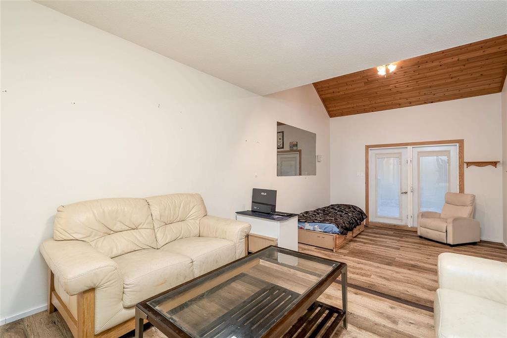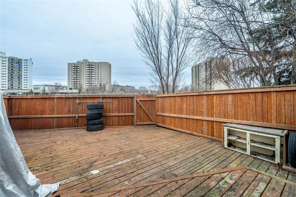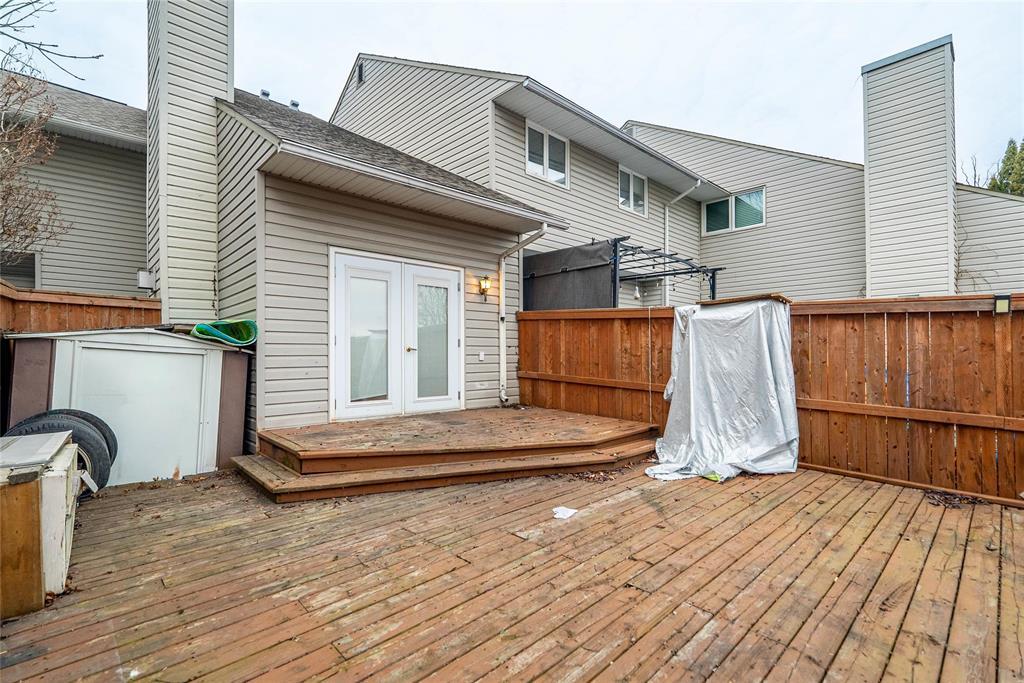 SHOWINGS START NOW! Offers presented as received. Welcome to this beautifully maintained St. James townhouse perfectly positioned along Sturgeon Creek. This bright, airy home features a stunning vaulted ceiling, a warm gas fireplace, and stylish laminate and vinyl flooring throughout the main living area. The well-appointed kitchen offers classic oak cabinetry, built-in oven, cooktop, and dishwasher ideal for everyday living and entertaining.The main floor also includes a convenient 2-piece powder room. Upstairs are three comfortable bedrooms and a 4-piece bathroom with private access from the primary suite. The finished basement adds valuable living space with a cozy rec area, office space, and laundry room. Enjoy year-round comfort with central air conditioning.Step outside to a fully fenced backyard featuring a deck overlooking Sturgeon Creek a serene setting for morning coffee or evening relaxation. This well-located home is within walking distance to public transit, schools, shopping, and restaurants. Parking directly out front is included in the condo fees.A wonderful opportunity to own a move-in-ready home in a highly desirable neighbourhood with exceptional natural surroundings.