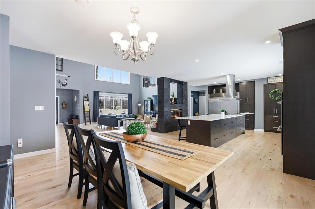 This is one of those properties that isn t for everyone and that s exactly what makes it special. Sitting on 73 private acres just 30 minutes from Winnipeg, this estate offers over 6,000 SF of living space to live, host, build, and truly unplug.The moment you walk in, the scale hits you. A grand entry with soaring ceilings and a sweeping staircase opens into an expansive living space anchored by a striking double-sided fireplace. The kitchen is built for gathering oversized island, hidden walk-in pantry, and views that remind you why you chose this lifestyle in the first place.The main-floor primary suite feels like its own retreat, complete with a spa-style ensuite and adjoining flex room perfect for a dressing room, office, or nursery. A four-season sunroom with hot tub extends the home year-round ideal for entertaining or unwinding after long days.Upstairs features a mezzanine overlooking the main level, four generous bedrooms, and a dedicated media room. Outside, the 36 x 60 shop with bathroom and wood stove gives you endless flexibility for toys, business, or hobbies.This isn t just a house it s space, freedom, and the kind of lifestyle people leave the city for.