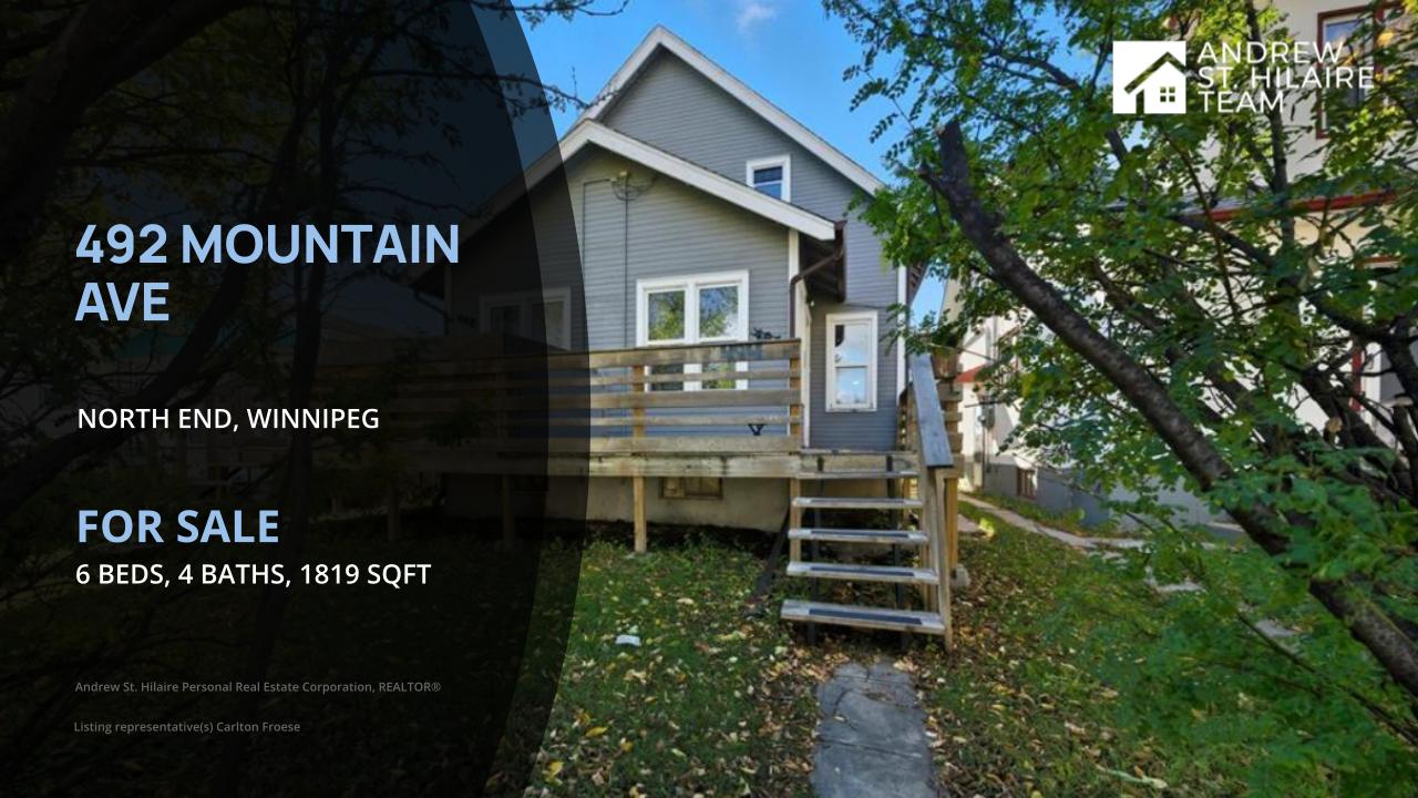 SS Now. Offers as received. Measurements +/- jogs. Incredible cash-flowing duplex perfect for your investment portfolio! Featuring two units (492 and 494 Mountain Ave) a preferred side-by-side layout (not up/down), with each unit offering 2 bedrooms upstairs, 1 bedroom on the main floor, a 4-piece bath, kitchen, and dining/living area. Each side also includes a partially finished basement with storage, rec space, laundry, and a second shower. All utilities are separately metered and paid by tenants. Unit 494 is currently rented for $1350/month, while 492 is vacant giving you the opportunity to set your own tenant (potential rent of $1375/month). Outdoor spaces include front decks, a storage shed and a backyard with grass and plenty of parking. Don t miss this investment opportunity call today!