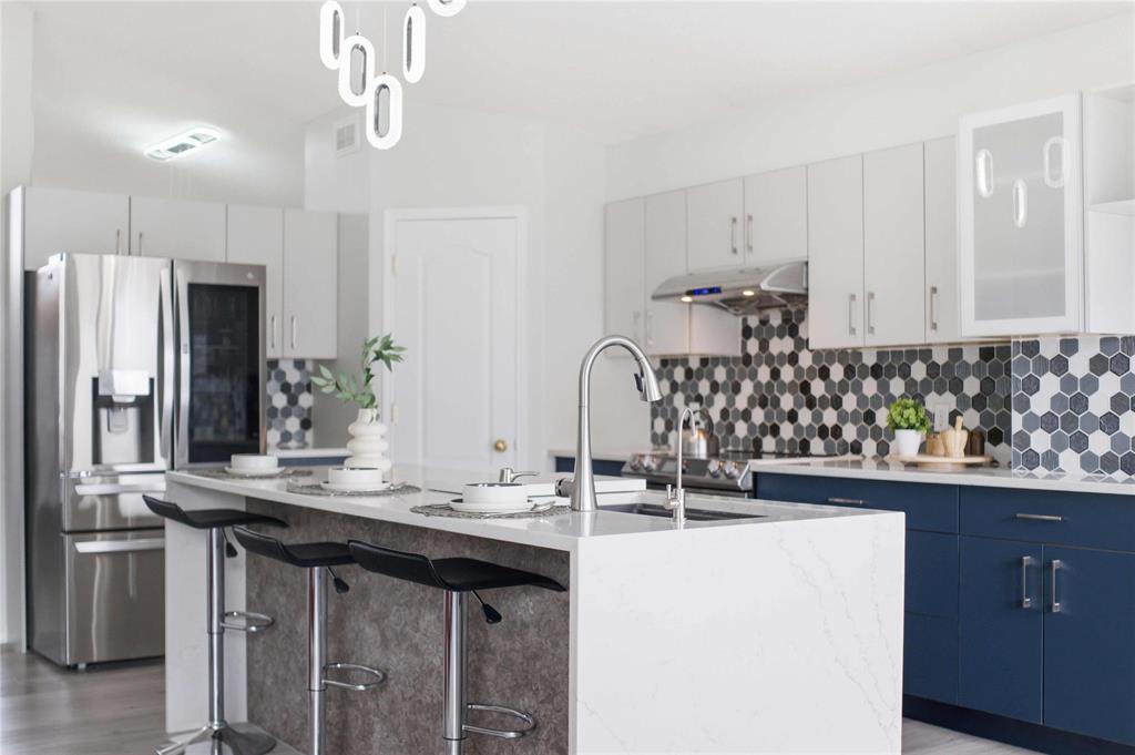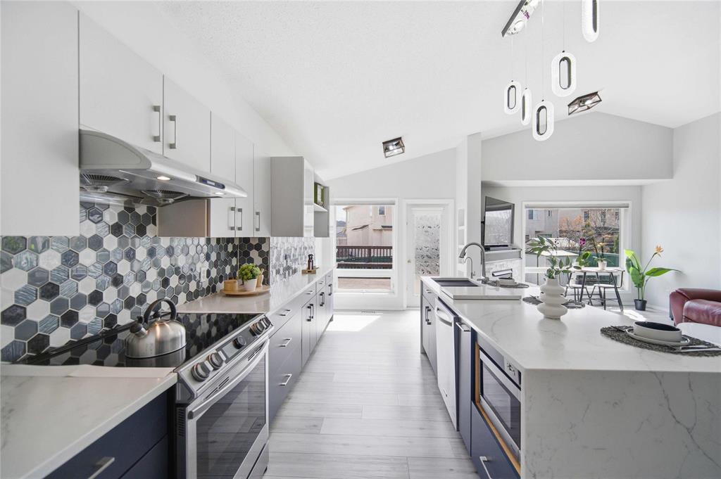 SS Now, OTP eve of May 6,+/-jogs. Check Supplements for Updates & Inclusions. Discover luxury in this impeccably maintained bungalow. Offering approx. 2,592 sq ft of living space, this home blends timeless design with modern smart-home features. Featuring fresh neutral paint(2025-26), a separate Living Room & formal dining provide an inviting setting for guests, the kitchen & Family Room with fireplace create a comfortable daily living space.The kitchen boasts a 10-foot waterfall island(2022), extended custom cabinetry, pantry & high-end appliances. The primary suite offers spa-inspired ensuite, walk-in closet & motorized blinds. 2 addl. bedrooms, a full bathroom & laundry with LG machines (2020) complete the main floor.The basement comes with 2 bedrooms,a full bath,recreational space,a kitchenette with new Fridge (2024),media wall including 64-inch TV & projector Screen, custom cabinetry, a fireplace & built-in Polk Audio speaker system. Enjoy your Backyard with a large deck, flowerbeds & a mature cherry tree blooming cherry blossoms in May/June. Other updates: 2 stage Hi-Eff Furnace (2017),Shingles (2018),HWT (2024),Smart garage doorOpener (2024),Central humidifier(2024), Lighting fixtures(2024)