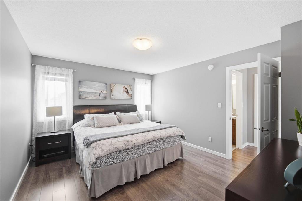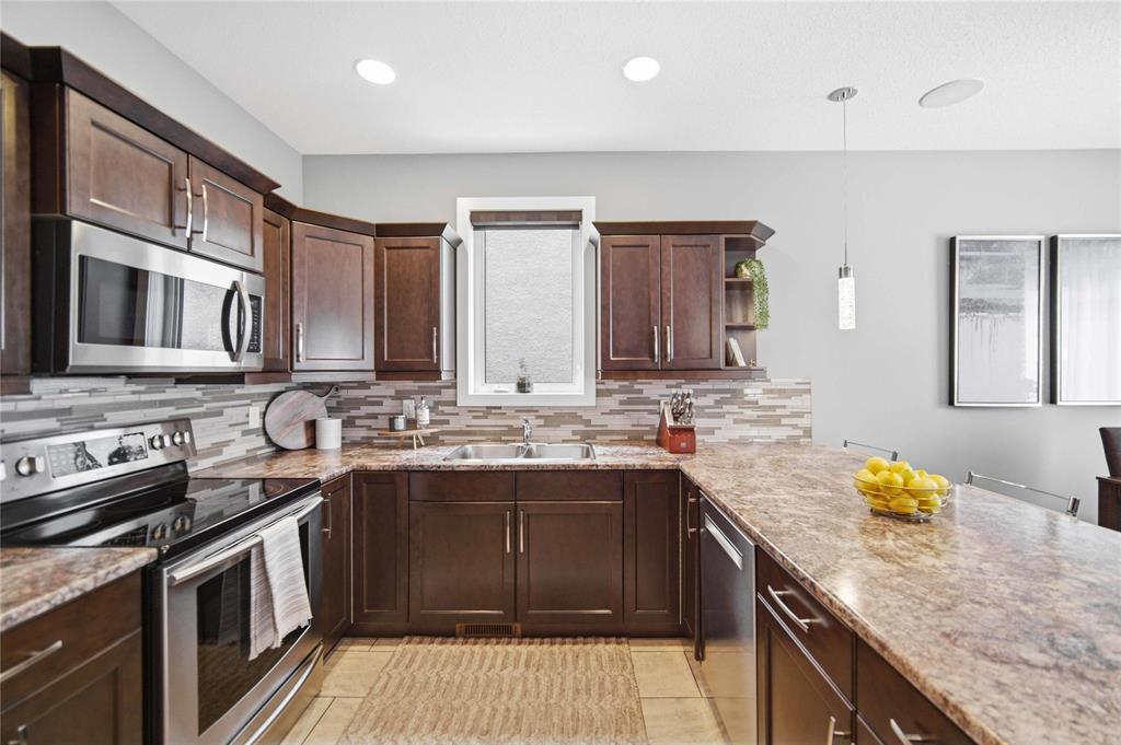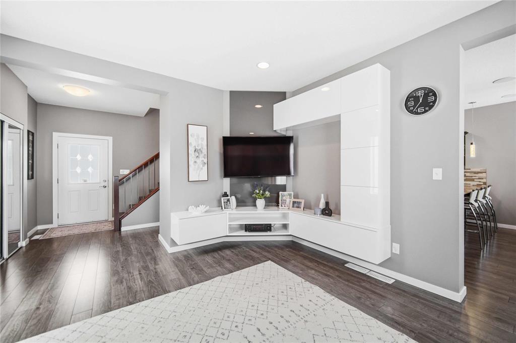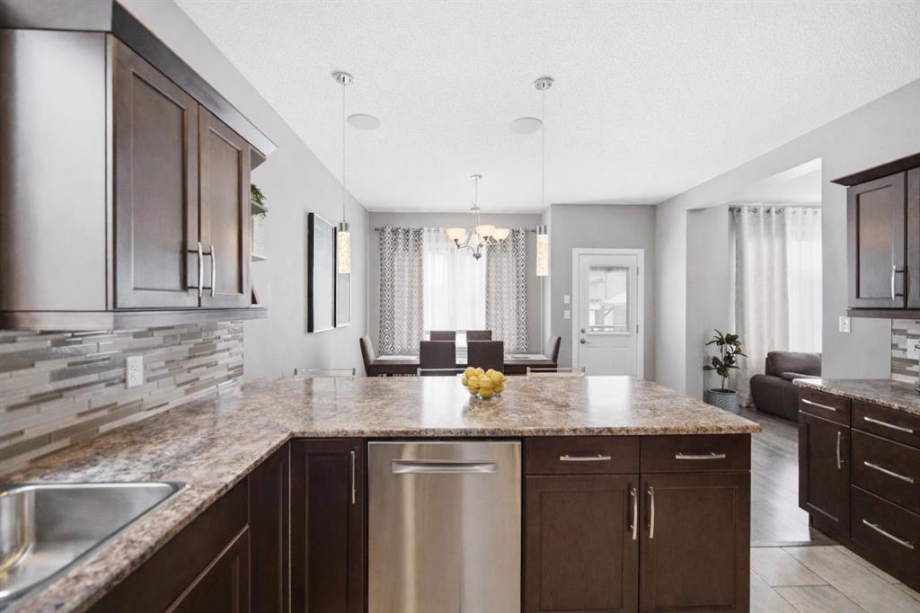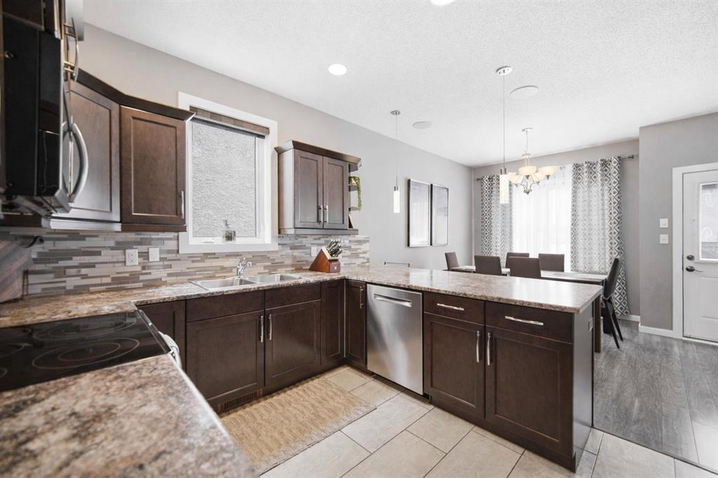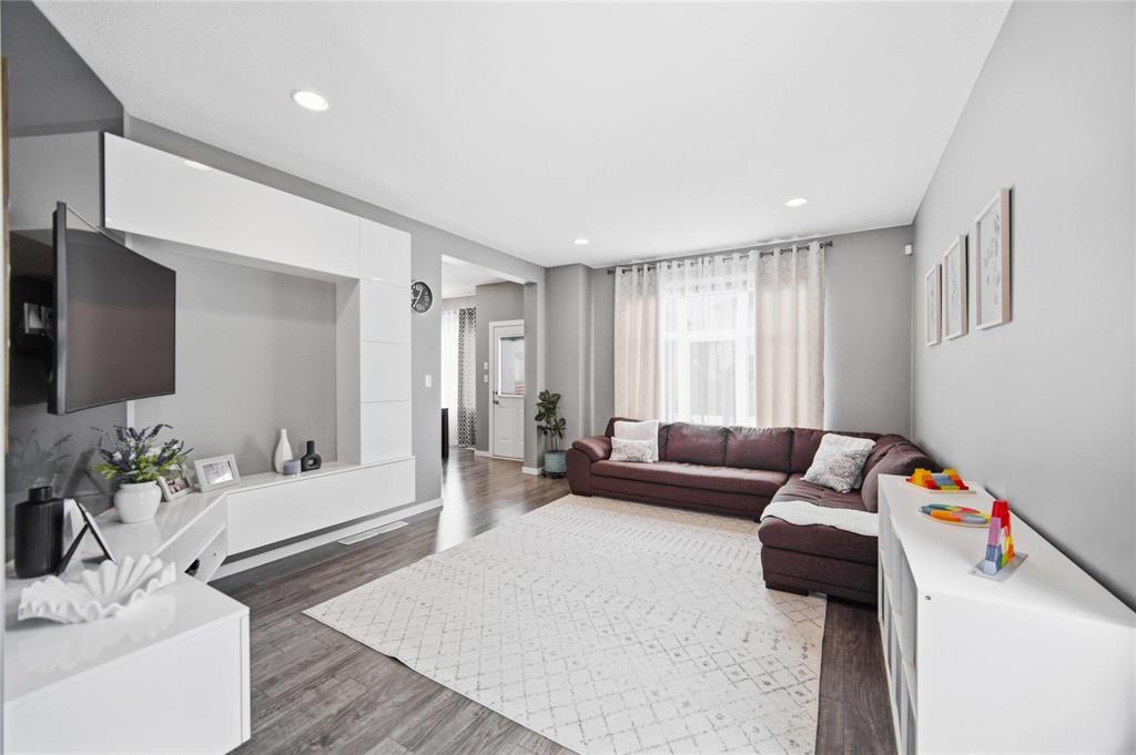 Offers as Received. Why build & wait when you can move in & enjoy this stunning home today! Welcome to this beautifully maintained home, built by Kensington & located in the desirable community of Canterbury Park. Designed for modern living, the main floor features a spacious living & dining area with a stylish built-in entertainment unit & laminate flooring flowing throughout the home, creating a warm and cohesive feel. The contemporary kitchen offers SS appliances, ample cabinetry, and great workspace, perfect for cooking, gathering, & entertaining. Upstairs you'll find 3 generous bedrooms, including a comfortable primary retreat with walk-in closet and ensuite.The fully finished basement expands your living space with a large rec room plus an additional room ideal for a 4th bedroom, gym, or office.Step outside to enjoy a beautifully landscaped backyard oasis featuring a deck and stamped concrete patio, perfect for summer BBQs and entertaining family and friends.Complete with a double attached garage and located close to schools, parks, shopping, and transit, this home offers the perfect blend of space, comfort, and convenience.This home is waiting for its next owners-book your showing today