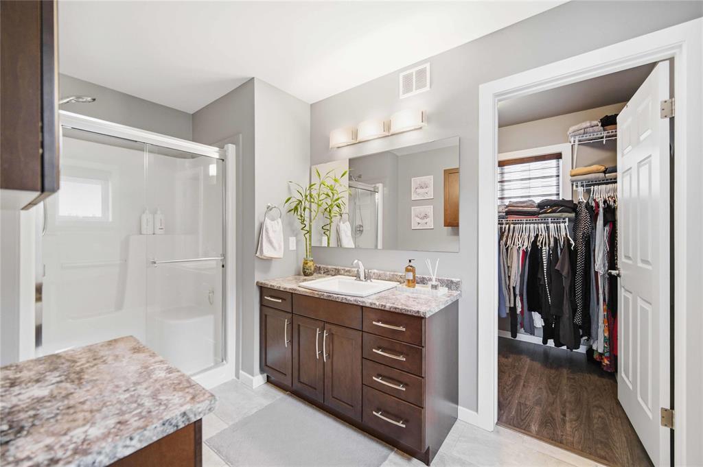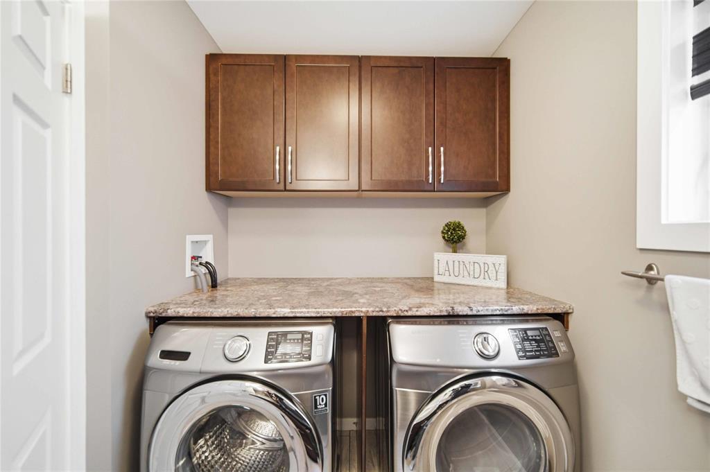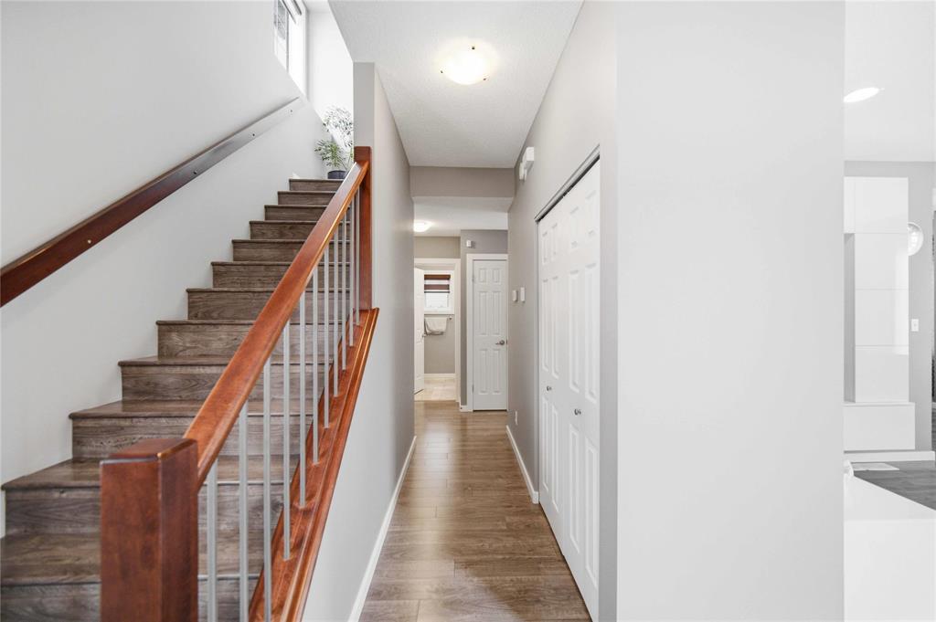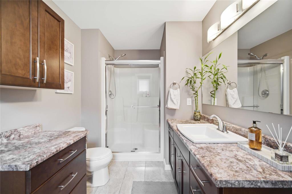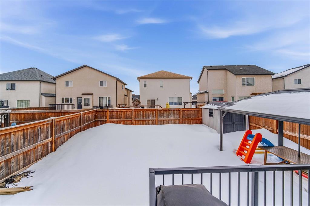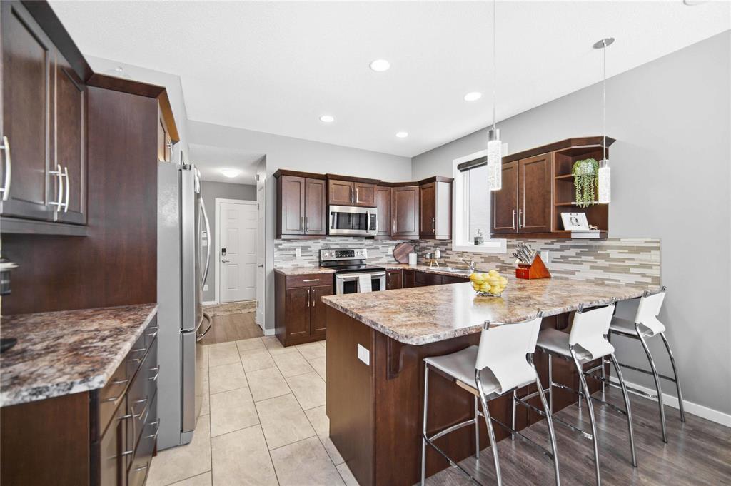 Offers as Received. Why build & wait when you can move in & enjoy this stunning home today! Welcome to this beautifully maintained home, built by Kensington & located in the desirable community of Canterbury Park. Designed for modern living, the main floor features a spacious living & dining area with a stylish built-in entertainment unit & laminate flooring flowing throughout the home, creating a warm and cohesive feel. The contemporary kitchen offers SS appliances, ample cabinetry, and great workspace, perfect for cooking, gathering, & entertaining. Upstairs you'll find 3 generous bedrooms, including a comfortable primary retreat with walk-in closet and ensuite.The fully finished basement expands your living space with a large rec room plus an additional room ideal for a 4th bedroom, gym, or office.Step outside to enjoy a beautifully landscaped backyard oasis featuring a deck and stamped concrete patio, perfect for summer BBQs and entertaining family and friends.Complete with a double attached garage and located close to schools, parks, shopping, and transit, this home offers the perfect blend of space, comfort, and convenience.This home is waiting for its next owners-book your showing today
