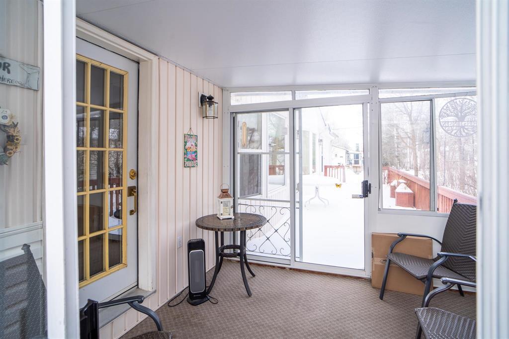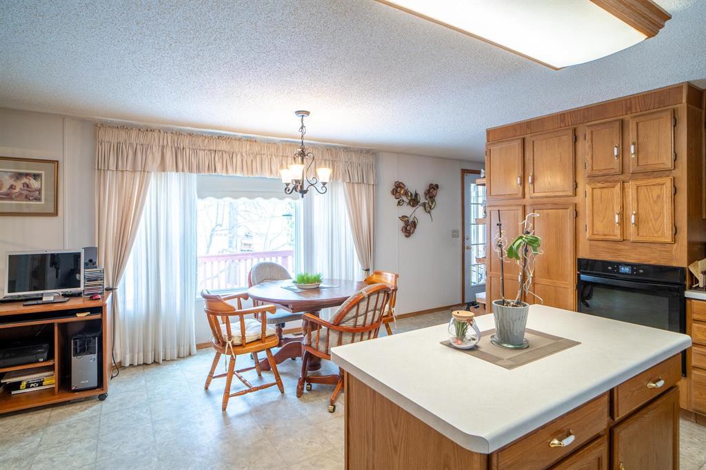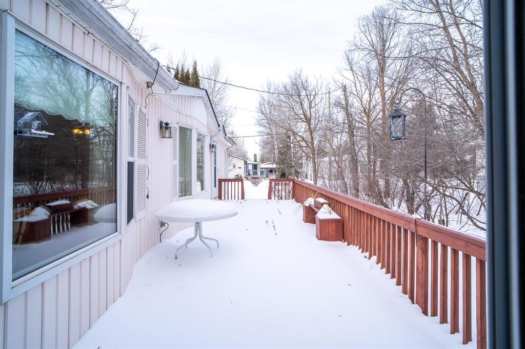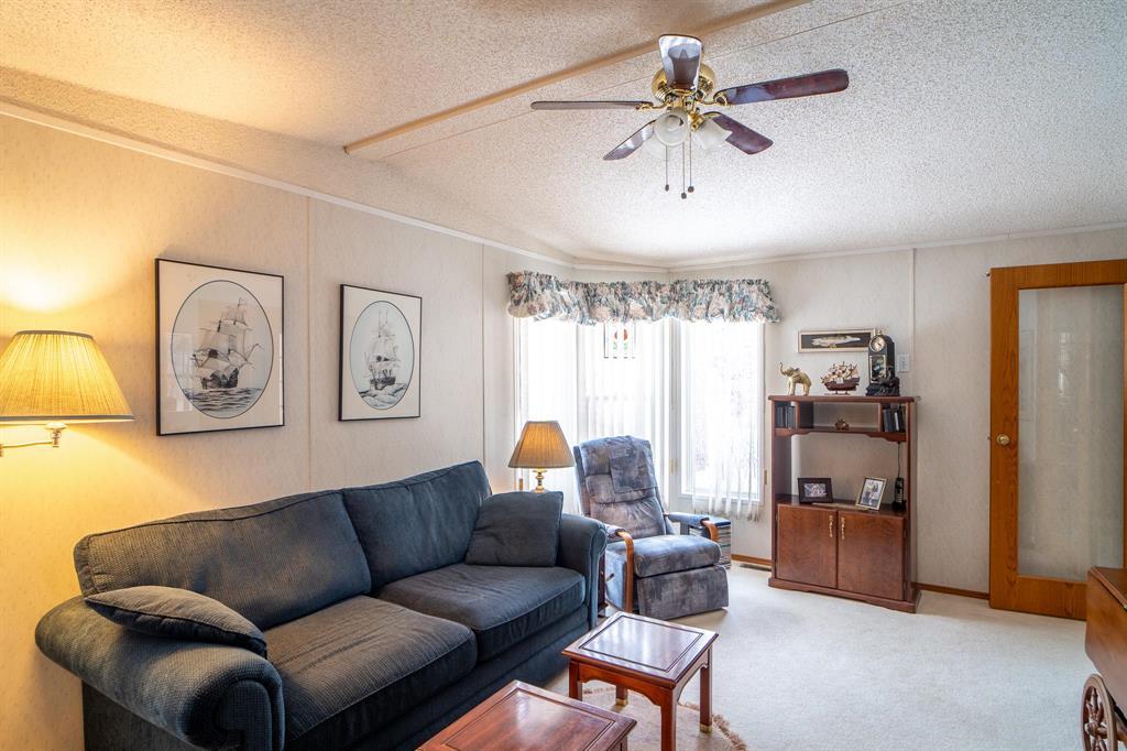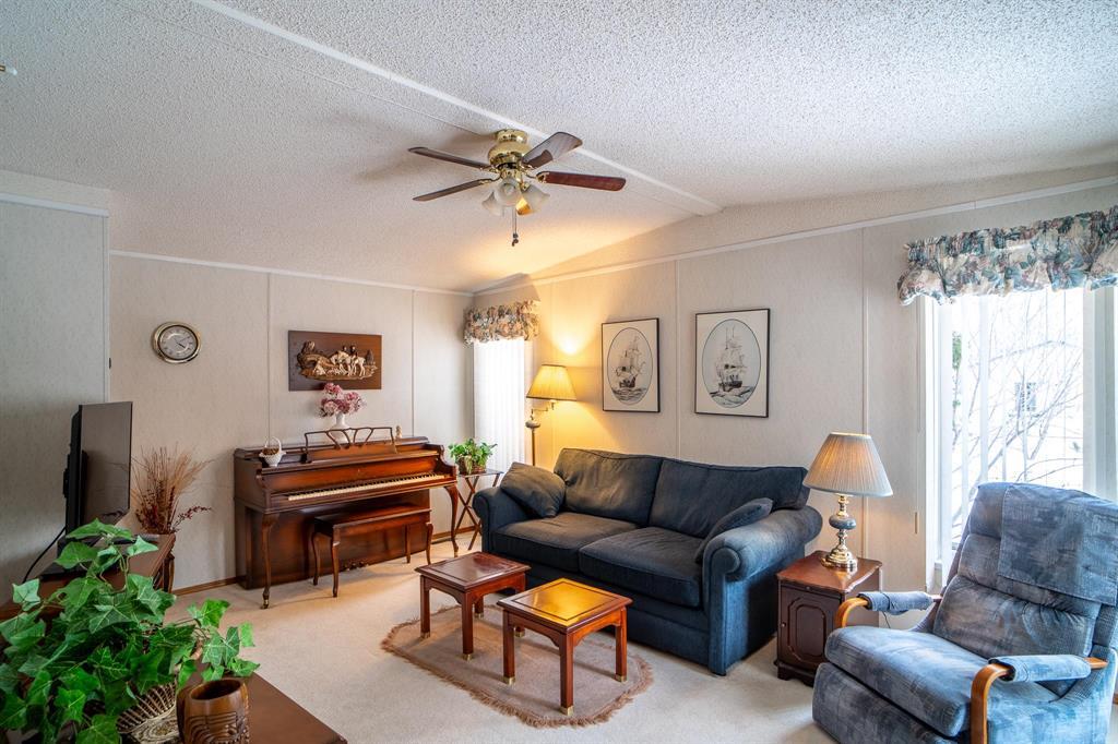 Well cared for, one owner home! 2 bedroom, 2 bathroom 18x85' mobile home located in the desired community of Paradise Village. This charming mobile has many features to boast about. Home has one bedroom on the front, one bedroom on the back, both with attached 4pc bathrooms-so you are able to host your out of town guests. The main living area is sunken, with lots of natural light coming in from the large window. The spacious kitchen has wood cabinets, an island, a cooktop and separate wall oven, with cupboards going right up to the ceiling so you can avoid those dust bunnies. Primary bedroom features a large walk in closet, and 4 pc ensuite. Back door area leads to a spacious laundry room, with laundry sink, extra closet and cabinetry. Out the back door find a 9'x9' sunroom leading to a large deck with plenty of room for your outdoor furniture. The 21x21 garage will help keep your car covered in winter, and provide extra storage space for those Christmas decorations seasonally. Yard features a sitting area, and the owner boasts that the lot is one of the best locations in the park with quick access to the community center, and the walking path! Book your private showing today.
