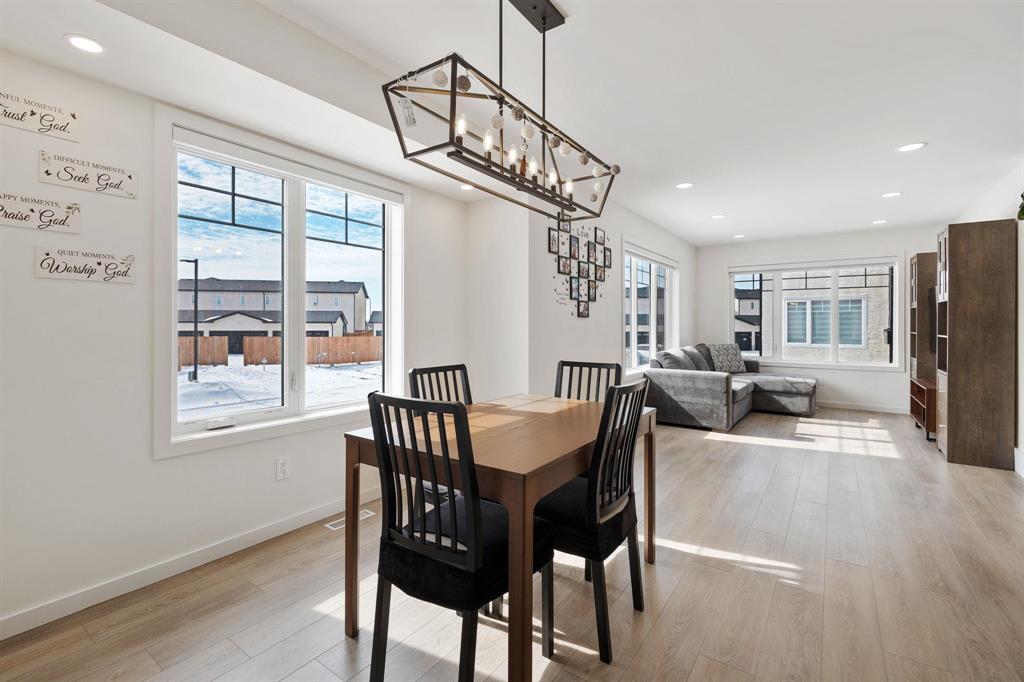Offers April 06, OH SAT/SUN 1-3 PM. Welcome to this spacious and turnkey 1,178 sq. ft. two-storey corner unit in the heart of Sage Creek. This home feels just like new and offers a bright, open-concept main floor with a stylish kitchen featuring an L-shaped peninsula, quartz countertops, tile backsplash, soft-close cabinetry, and stainless steel appliances. The main level is completed by a convenient 2-piece powder room and added storage.Upstairs you ll find 2 generously sized bedrooms, a 4-piece bath, and second-floor laundry for everyday convenience. The fully finished lower level offers a large bedroom with ensuite and an impressive window size rarely found, bringing in exceptional natural light.As a corner unit, this home enjoys oversized triple-pane windows with blinds, extra privacy, and abundant sunlight throughout. Additional features include LVP flooring, 2 parking stall, and a premium location overlooking the school park and soccer field, with a new elementary school and daycare directly across the street. A fantastic opportunity to own a move-in-ready home in one of Winnipeg s most desirable communities. Book your private showing today.