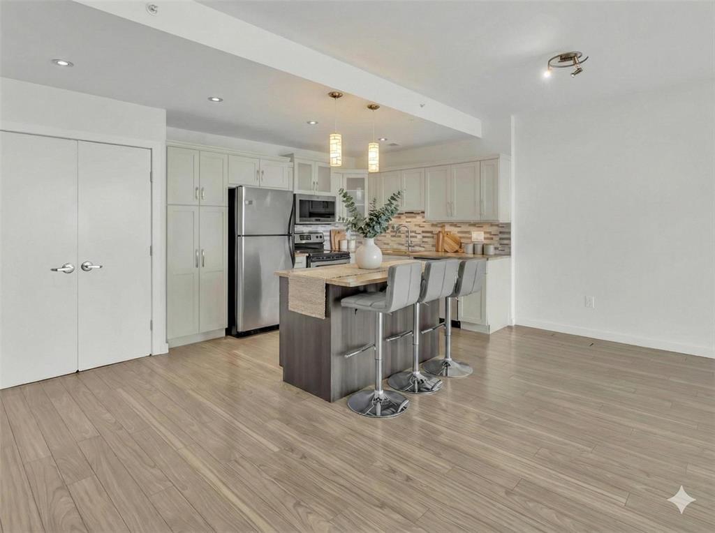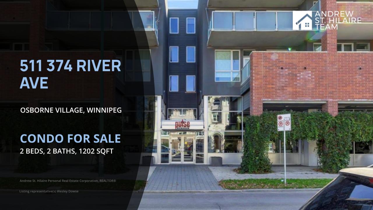 SS. Now, OTP as received. Welcome home to The Pulse on River Condominiums, walking distance to Osborne Village & all amenities! This top floor condo is SPACIOUS at 1202sf. features an amazing open concept floor plan IDEAL for entertaining. The kitchen is well appointed w/ stone counters, 2-tone cabinetry, Island w/ seating area, tiled backsplash, under cabinet lighting & stainless appliances. The adjacent dining room is perfect for family life, opens to the living room. The spacious living room features a whole wall of windows bathing the space in natural light. This unit features 2 generous sized bedrooms & 2 full baths. The unit also includes in-suite laundry / storage room & South facing balcony perfect for Summer. This building is loaded with desirable features including a well equipped gym space, No Need for a membership elsewhere! The party room is a great space to unwind w/ friends, includes pool table, fireplace sitting area, kitchenette for hosting & lounge / TV room - can be reserved for private events. Living in Winnipeg we know the value of underground parking, this unit comes complete with one underground parking stall & storage locker. Call now, this pet friendly condo is priced to sell!