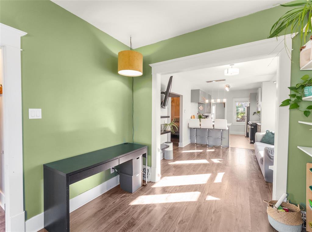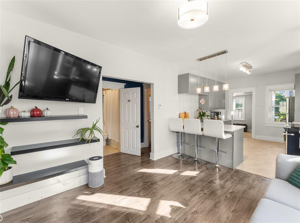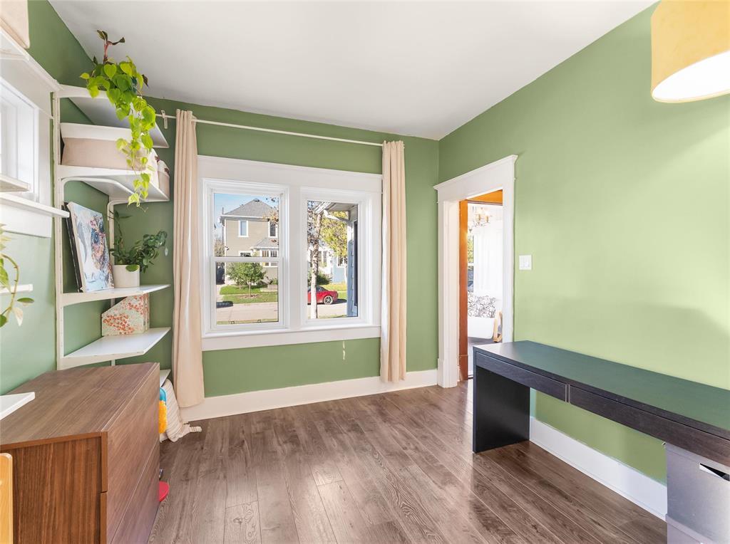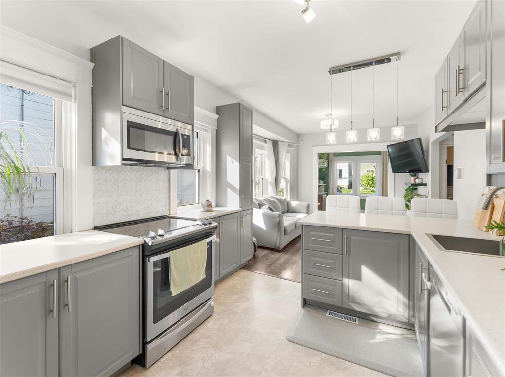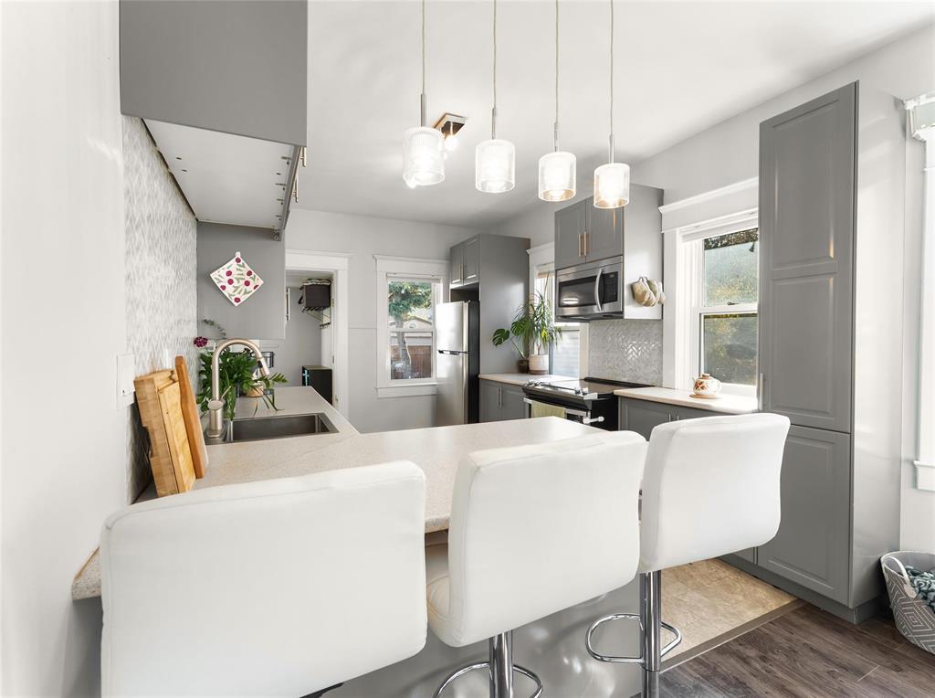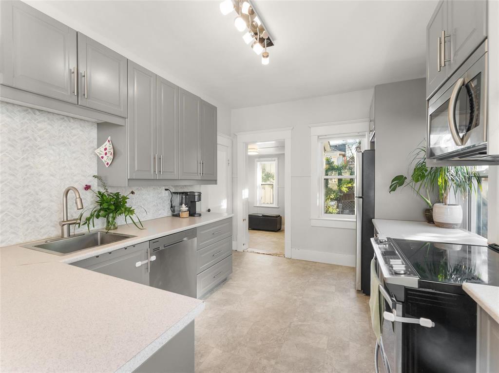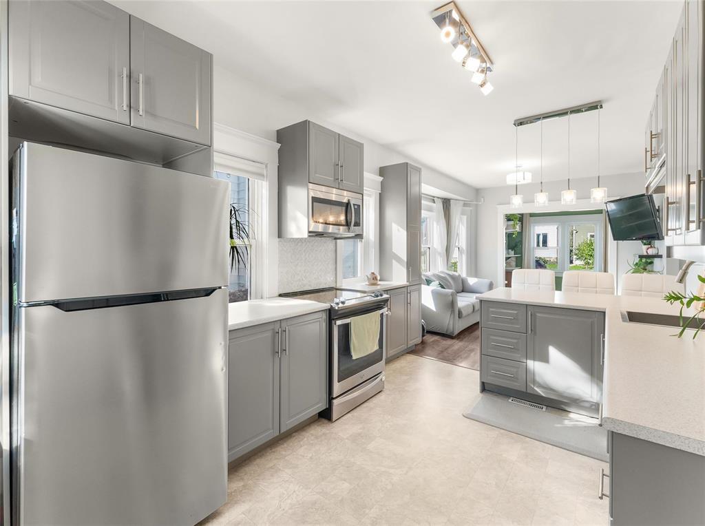 SS Oct 14, OTP evening of Oct 20th.Step inside this beautifully updated West End home and fall in love with its light, charm, and thoughtful design. The sun-filled porch welcomes you in, leading to an open living area that is adjoining to the modern kitchen with sleek grey cabinetry, lots of counter space, tile backsplash, and stainless steel appliances perfect for cooking, entertaining, or connecting with family. A bright flex room on the main floor makes an ideal office or playroom. This home has 2 bedrooms separated by the full bathroom- creating privacy and convenience in this efficient layout. Outside, enjoy a private fenced yard with patio space and a single detached garage with back-lane access. upgrades include: kitchen (2017), A/C (2019), Sunroom windows and doors (2017)Located close to parks, schools, shopping, and transit this move-in-ready home is the perfect blend of character and convenience.