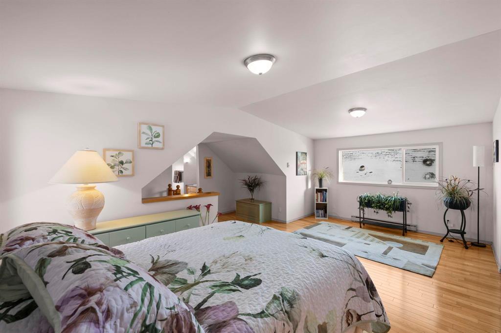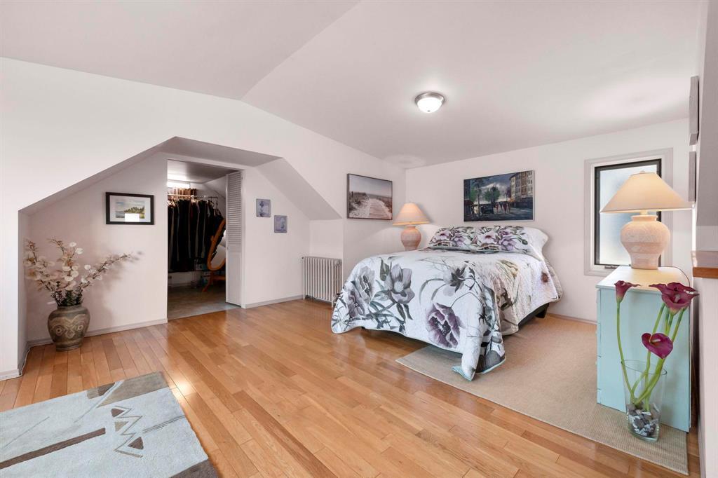 Showings start Feb 4, Open House Sunday 12-2pm, Offers welcomed Feb 10 in evening. Set in one of the most walkable and sought-after neighbourhoods, this light and airy home is designed for someone who values layout, flow, and lifestyle over a long list of bedrooms. Thoughtfully remodelled, the main floor offers a bright, open kitchen that connects seamlessly to the rest of the living areas. A full main-floor bathroom with a steam shower adds everyday luxury and convenience. Upstairs, the entire level is dedicated to an expansive primary suite, creating a true retreat. The bedroom is generous in size and also features a large walk-in closet and a full ensuite bathroom. The partially finished basement provides additional flexibility with a second bedroom and a lot of storage space. Outside, enjoy a private backyard with a large deck for summer evenings, along with a single detached garage and parking pad. This is a home for someone who wants beautiful light, smart space, and an unbeatable central location.