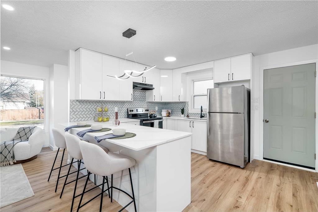 SS Now | Offers Oct 28 | OH: Oct 25 & 26, 12-2 PM |Step into luxury with this beautifully upgraded bungalow in the heart of River Park South! Designed for modern living, this home features an open-concept layout with premium vinyl plank flooring, a bright living room with an elegant fireplace, and a stunning high-gloss kitchen with quartz countertops, a spacious island, and brand-new stainless steel appliances. The main level features a comfortable primary bedroom with a 4-piece ensuite, two spacious bedrooms, and another 4-piece bathroom with a clean, modern finish. The fully finished basement provides even more living space with a large recreation area, a cozy office space, a guest bedroom, and an additional full bathroom perfect for family, guests, or a home workspace. Outside, enjoy your private fenced deck and a parking pad at the back with rear drive access. This home perfectly balances style and comfort, thoughtfully designed for modern living. Bright, open spaces flow into private retreats, creating a warm and inviting atmosphere. Move-in ready and beautifully finished, it s where comfort meets class and where your next chapter begins.