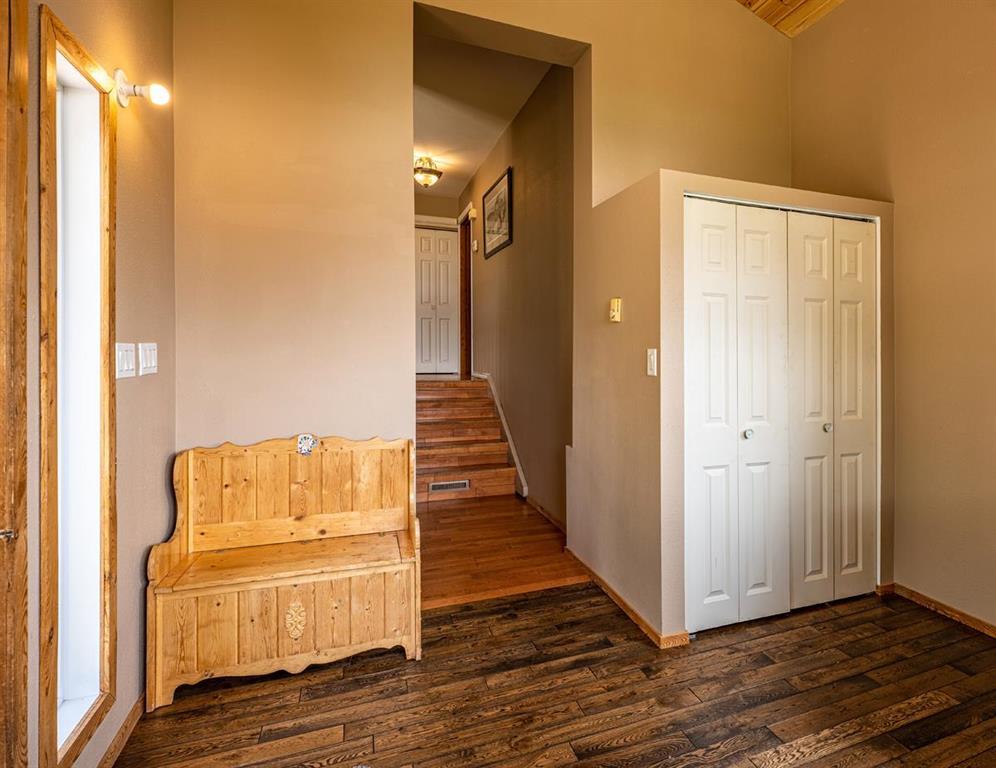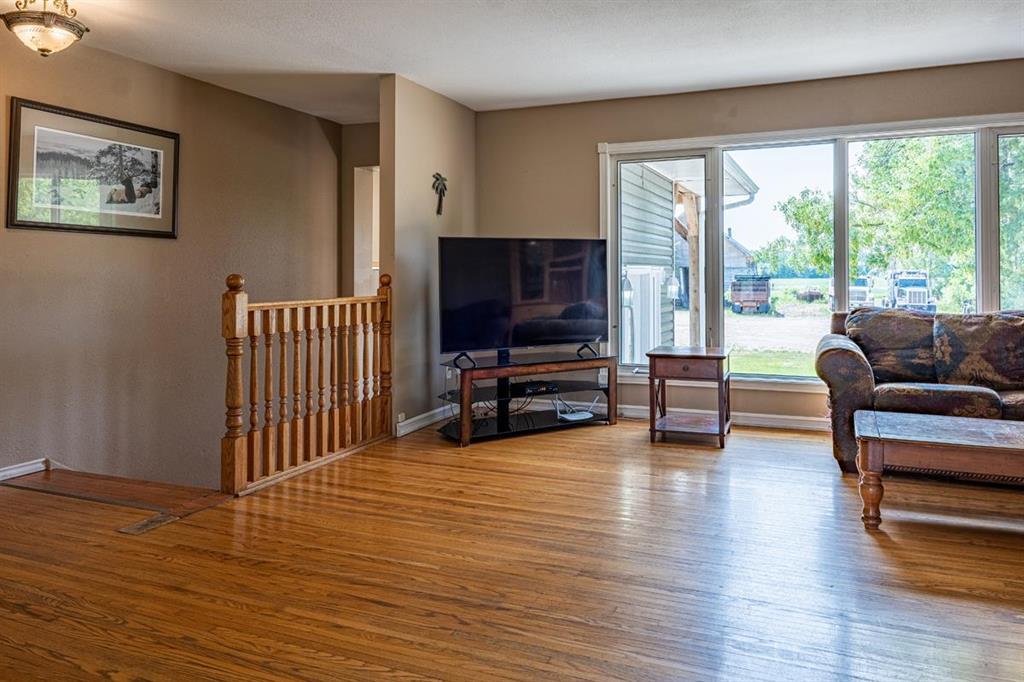 Rare opportunity to own almost 315 Acres (2 parcels on 2 titles) including a 1500 ft. raised Bungalow featuring 4 Bedrooms, 2 full Bathrooms and a Walk-out Basement. Seller currently runs a viable topsoil & landscaping business from this property. This well-maintained re-modeled Bungalow has a grand front entrance with soaring ceilings that leads up the stairs into an Open concept Living-room, Dining-room and Kitchen. The large living room boasts hardwood floors and offers southern views of sprawling acreage. The Dining-room has patio doors out to the spacious deck where you can enjoy BBQs, or just sit and relax in your very own park-like setting. The spacious Eat-in Kitchen offers plenty of cabinetry & counter space and all appliances are included. Head on down the hall to the Primary Bedroom w/large closets. 2 more good sized Bedrooms and a 4pc Bathroom complete the main floor. The walkout basement has a spacious Rec-room with woodstove for supplementary heat. Garden doors lead out to the back yard. Large 4th Bedroom & 3pc Bath w/walk-in shower and a laundry area completes this lower level. Double attached Garage and 30x40 Shop with 10ft ceilings. Shingles: 2022. Community Co-Op water.