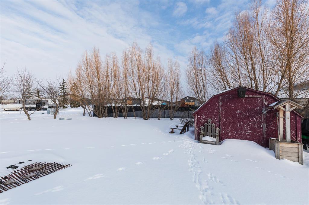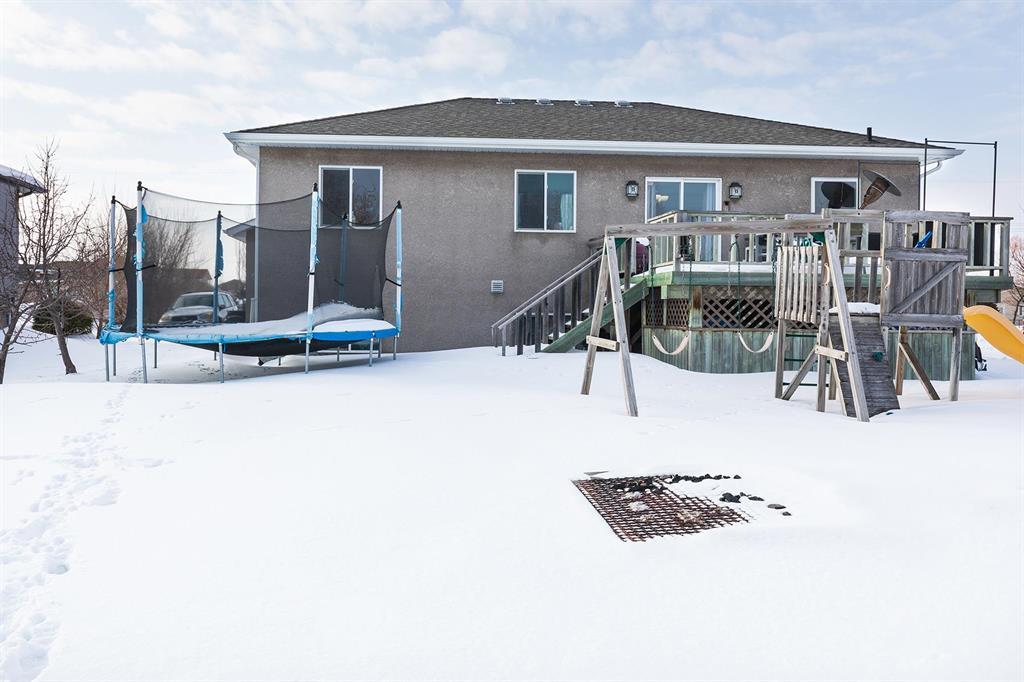 Welcome to this 4-bedroom bi-level tucked away on a quiet street in a fantastic commuter location just 20 minutes on 4 lane hwy to Winnipeg! Step inside to an inviting open-concept floor plan highlighted by build-out details and elegant trayed ceilings that add character and architectural charm. The bright and functional kitchen features stainless steel appliances, plenty of prep space, and flows seamlessly into the dining area perfect for everyday living and entertaining. A garden door leads to the back deck overlooking a spacious, nicely treed yard, complete with a storage shed and play structure ideal for families or those who love outdoor space. The primary bedroom offers convenient access to the main bath through a pocket door. A second & third bedroom complete the main level. Downstairs, the partially finished basement includes another large bedroom, a generous rec area, a 3-piece bath, and laundry with room to add your own finishing touches. Additional highlights include a double attached garage and excellent curb appeal. If you re looking for space, value, and an easy commute, this one checks all the boxes!