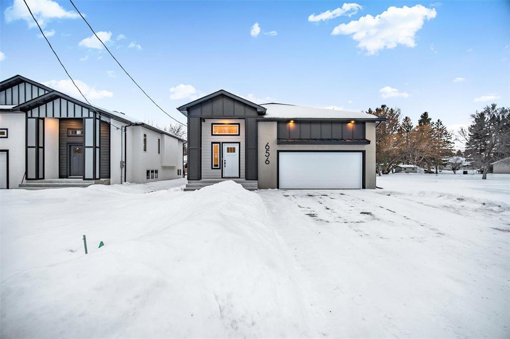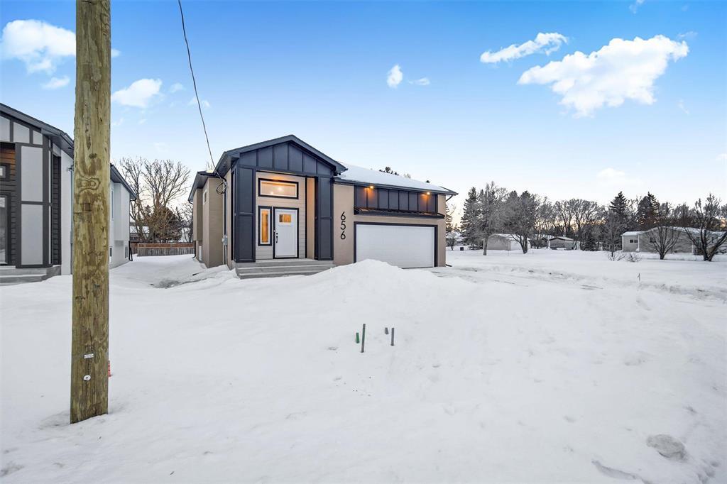 Brand new, modern, and move-in ready! Welcome to 656 Elm Ave in the growing Town of Beausejour. This newly custom built home offers 1,160 sqft of main floor living space, is ready for immediate possession, and is sure to impress! All you have to do is bring your personal belongings and unpack. The layout is spacious and functional with a favourable sized living area, kitchen with large island & quartz countertops, and dining space. The home features laminate flooring throughout, patio doors off the dining area to your future deck, and an attached 20x22 garage. Main floor offers two bedrooms, including a primary with walk-in closet, and 3-pce ensuite. The basement is fully insulated and boarded and ready for your future development. There is ample space for another bathroom, bedroom, rec room or office space(can be finished prior to possession at an extra cost). Included is central A/C, and a National Home Warranty policy for peace of mind. The exterior is finished with acrylic stucco and maintenance free boarding, along with minimal concrete steps for easy access. Call your agent and book a viewing! Some photos have been virtually staged.