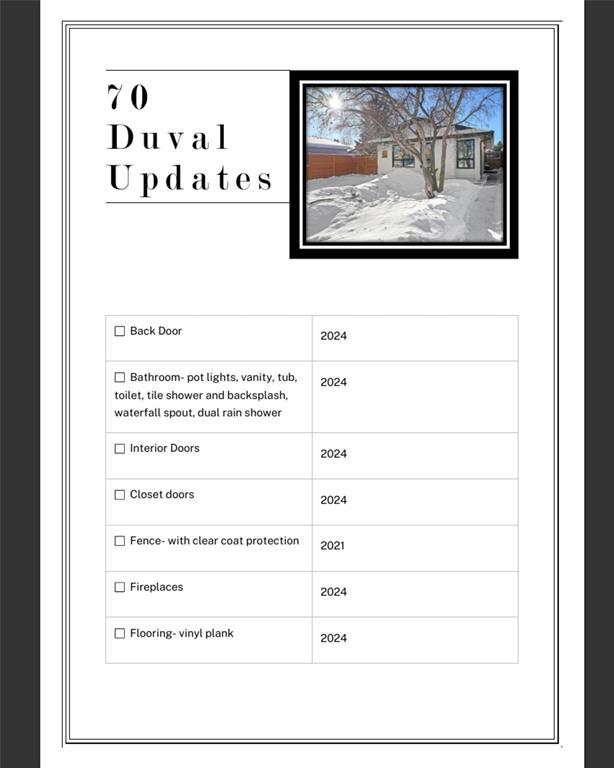 Offers anytime!! Welcome home to 70 Duval St where pride of ownership is obvious as soon as you arrive. This home has been meticulously maintained and updated starting with an updated fence and beautiful curb appeal with fresh paint, soffits and eaves. Step inside to a gorgeous updated kitchen with soft close drawers, updated appliances and beautiful custom fireplaces in the living room and primary bedroom for all the vibes! Continuing through the home you will notice all updated lighting, doors, flooring, full renovated spa-like bathroom and the list goes on! There are 3 beds and 1 bath on the main floor, lower level is a canvas for you to make your own. This home has all the upgrades to make you feel cozy and comfortable including HRV, most windows updated, updated furnace, roof and more! Close to quiet neighborhood parks, shopping and schools, this home is the epitome of move-in ready for a family or starter home in a quiet family friendly neighborhood located close to everything!