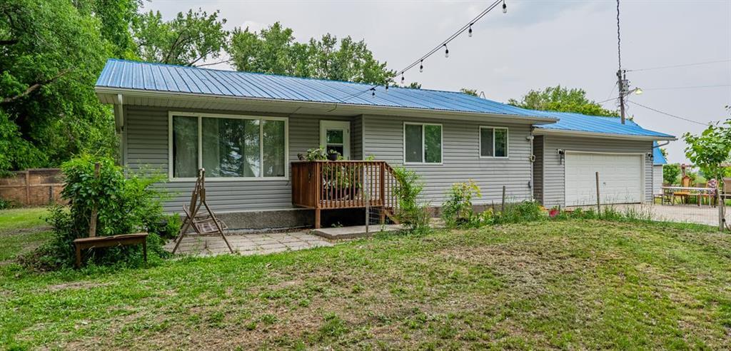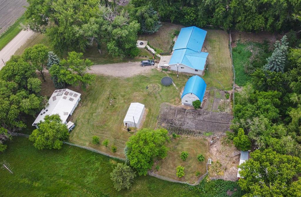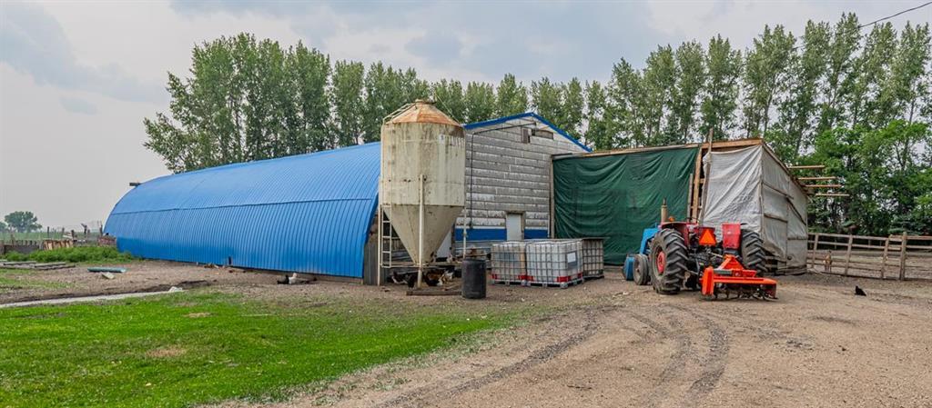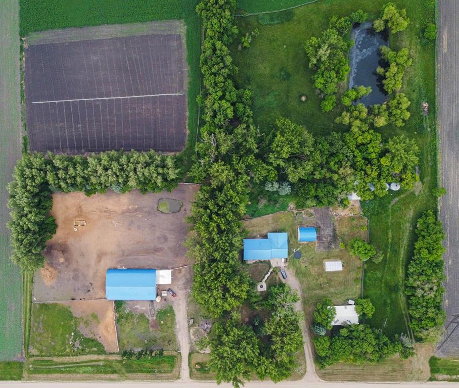 Incredible opportunity to own a turnkey hobby farm on 40 acres with a fully finished bungalow and double attached garage. The home offers 3 bedrooms on the main floor, 2 more in the basement and 2 full baths. The lower level, completed in 2020, features in-floor heat for added comfort. Recent updates include a 5-year-old furnace, central air, new hot water tank 2024 and washer and dryer 2025. Enjoy municipal water, a holding tank with yearly pump-out and a septic field at the back of the home. Powered by 150-amp service, this well-equipped property is ideal for a variety of agricultural uses. The insulated Quonset currently houses approx. 200 sheep and chickens. A cement-floor red barn is ready for 20 24 cows (needs some finishing), while the powered blue barn is perfect for raising chicks. The land features 4 years of alfalfa, 1 acre of vegetables, and 5 fenced acres for pasture or livestock. Additional highlights include a detached 3-car garage, 3 grain bins, greenhouse, ride-on mower, sweeper and a tractor with scooper and tiller attachments. In March 2025, water was plumbed to the Quonset to support operations. This is a rare opportunity to own a diverse, ready-to-go farm setup with room to grow.